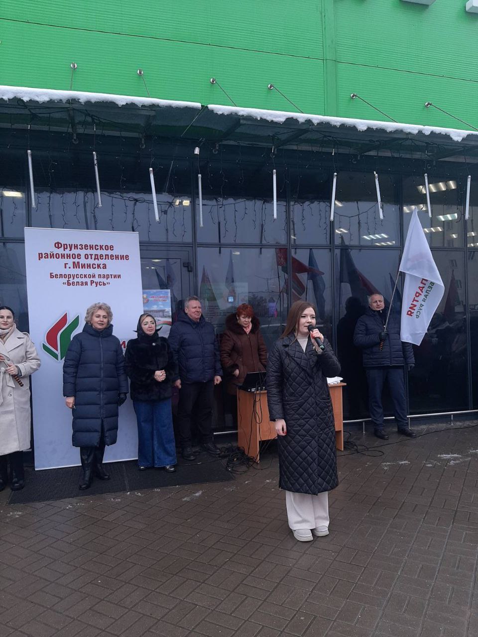 Культурно-патриотическая акция «Я буду голосовать!», организованная Фрунзенской районной организацией «Белая Русь» и Белорусской партией «Белая Русь», собрала людей разных возрастов, разных взглядов, разных профессий на площадке перед ТЦ «АЛМИ».