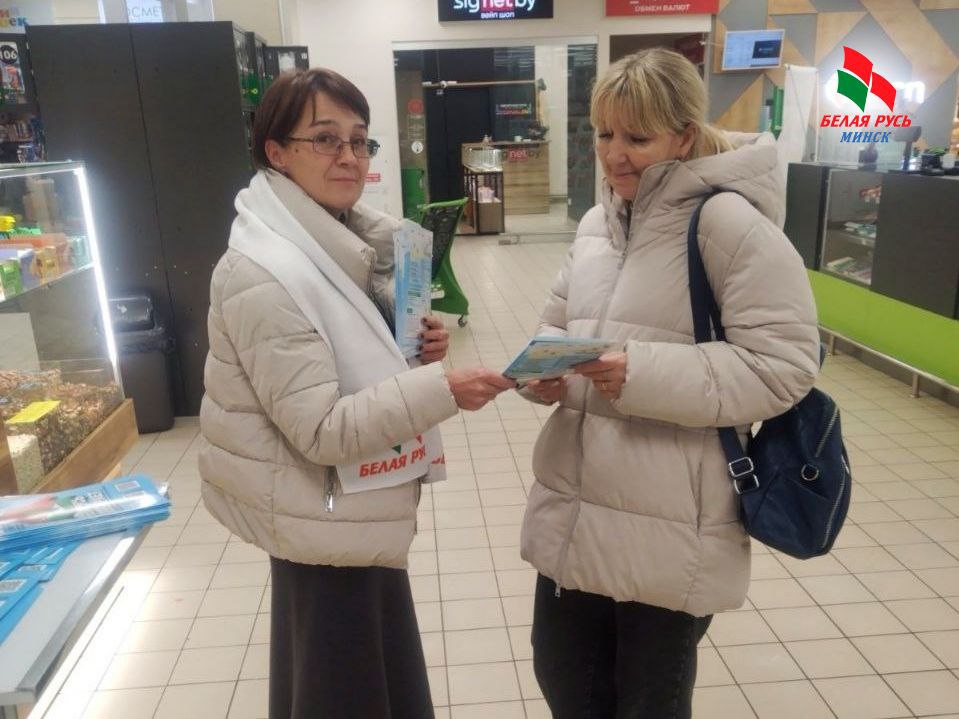 Активисты районной организации продолжают информировать граждан о ходе избирательной кампании по выборам Президента Республики Беларусь и приглашают принять активное участие в выборах.