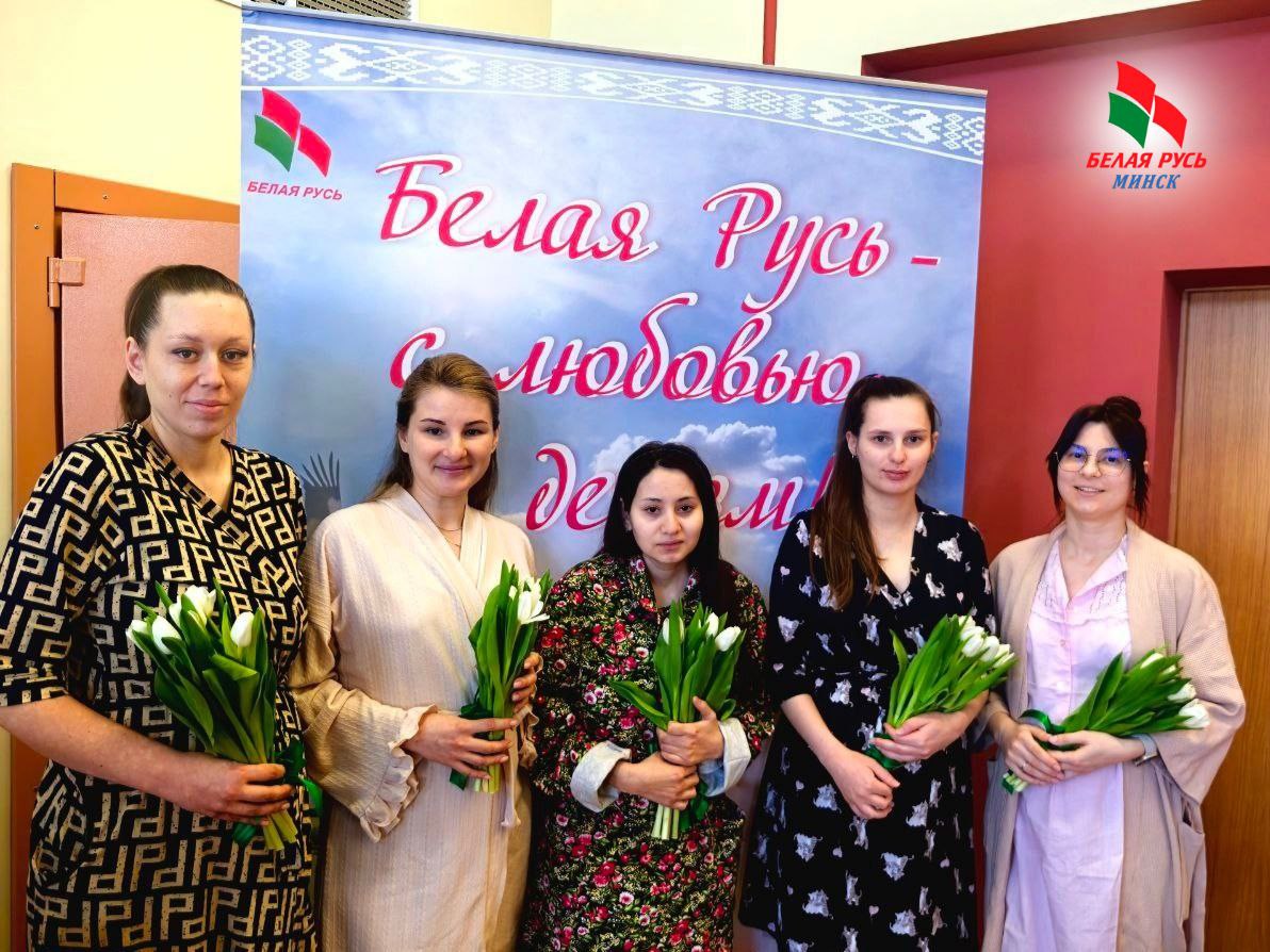 Представители Фрунзенской «Белой Руси» совместно с депутатом Палаты представителей Национального собрания Республики Беларусь Анжеликой Курчак и представителями общественного объединения «Белорусский союз женщин» поздравили молодых мам с этим знаменательным событием.