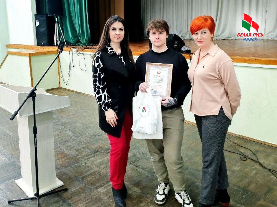 В торжественной обстановке юного героя наградили грамотой ректора Республиканского института профессионального образования, благодарственным письмом и подарками от Фрунзенской районной организации «Белая Русь».