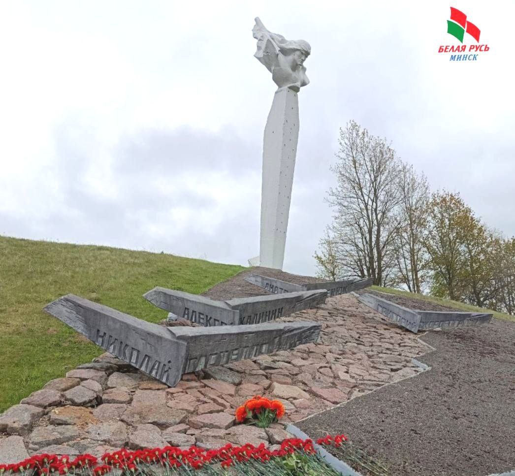 Линия Сталина — Мемориал экипажу самолета Николая Гастелло — Курган Славы — священное место, где возложили цветы и почтили память всех, кто отдал жизнь за нашу свободу.