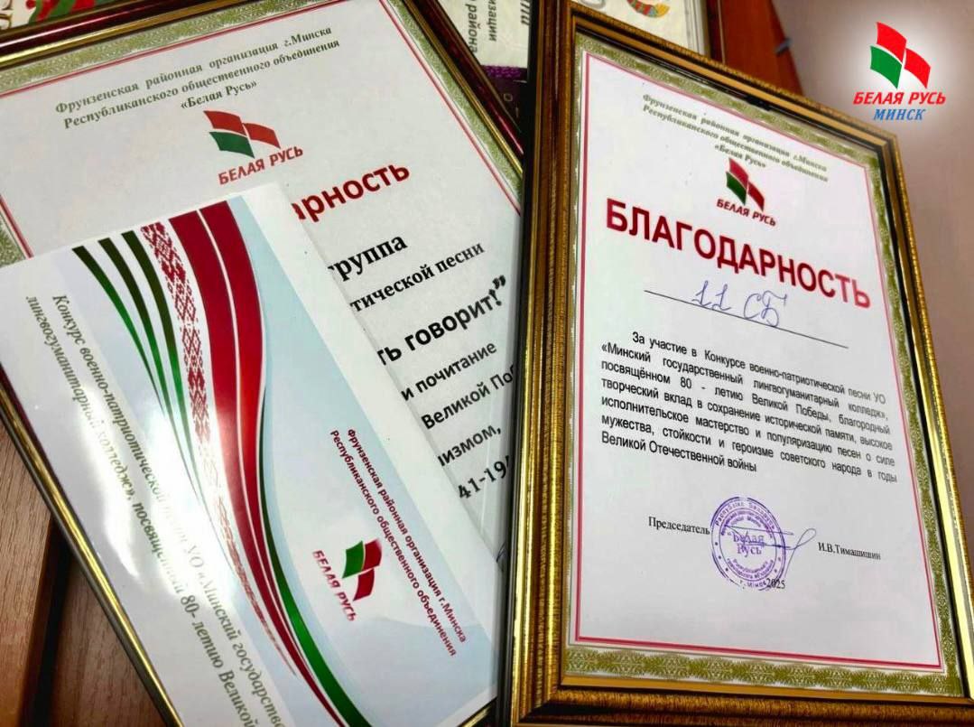 Особую благодарность за активное участие и талантливое исполнение от Фрунзенской «Белой Руси» группам 14ИП и 11СБ.