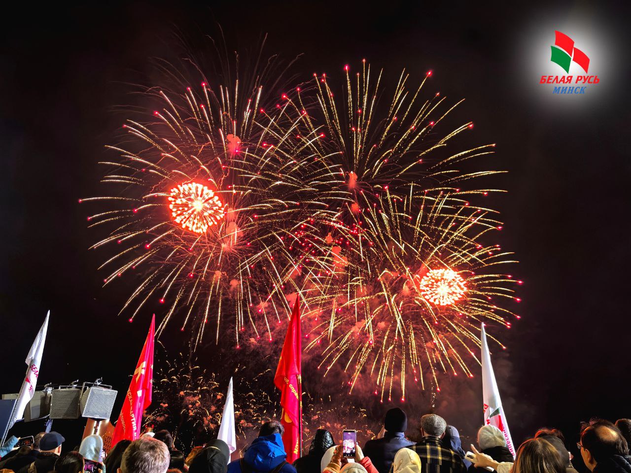 Завершился парад грандиозным салютом, который озарил ночное небо яркими огнями.