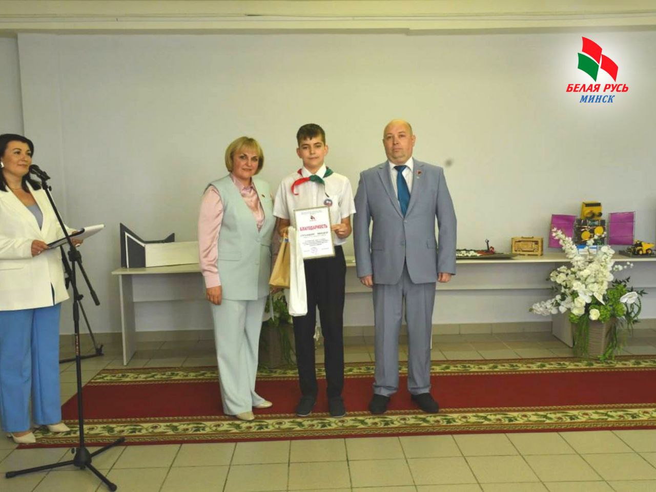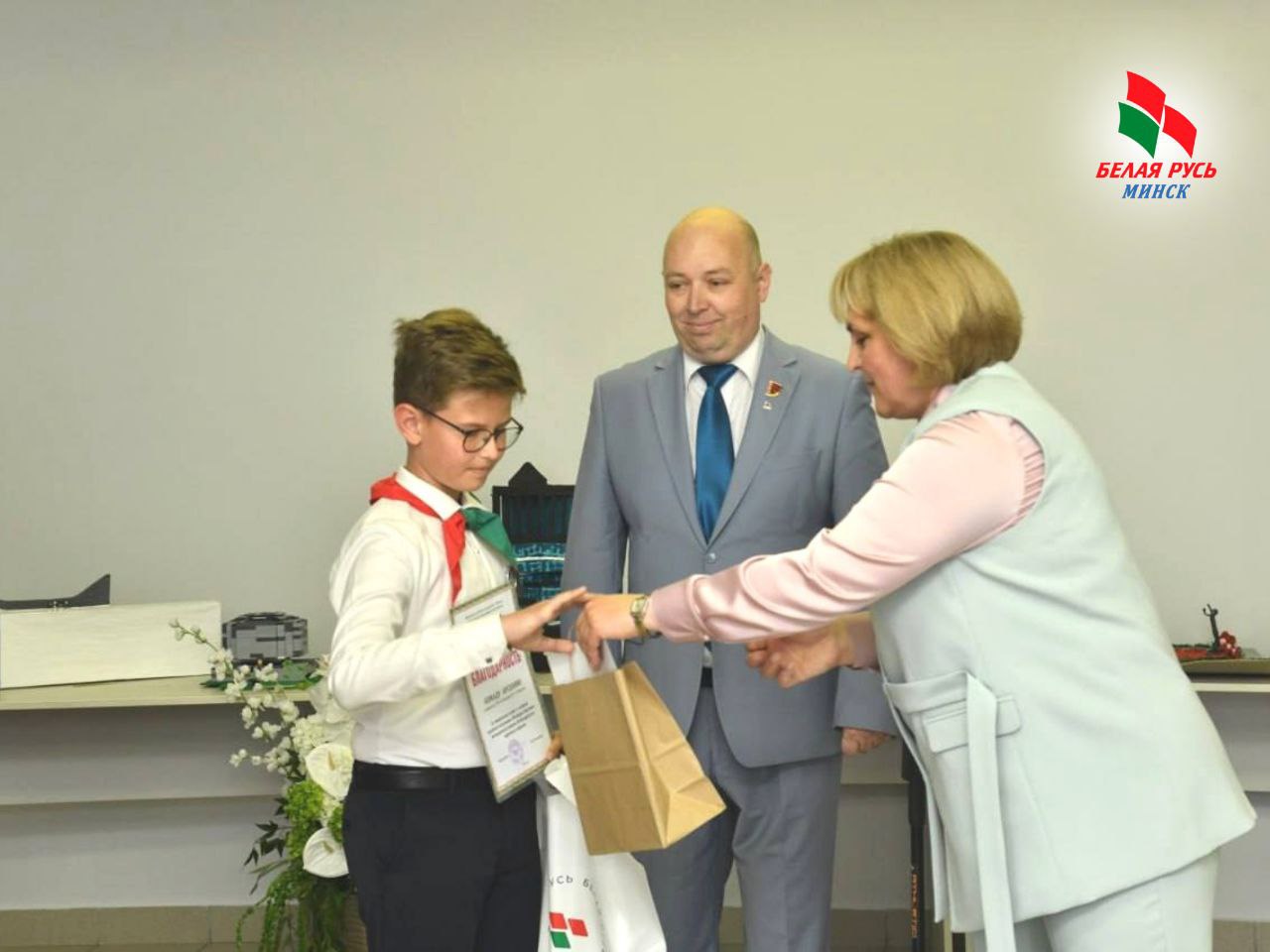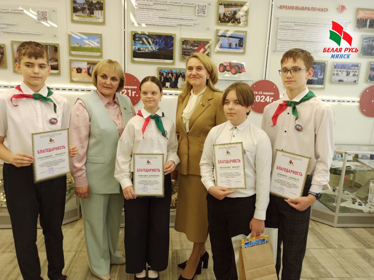Учащиеся гимназии получили благодарственные письма и памятные подарки от Фрунзенской «Белой Руси» за активное участие в конкурсе макетов значимых объектов Республики Беларусь, созданных в период с 1996 по 2024 годы.