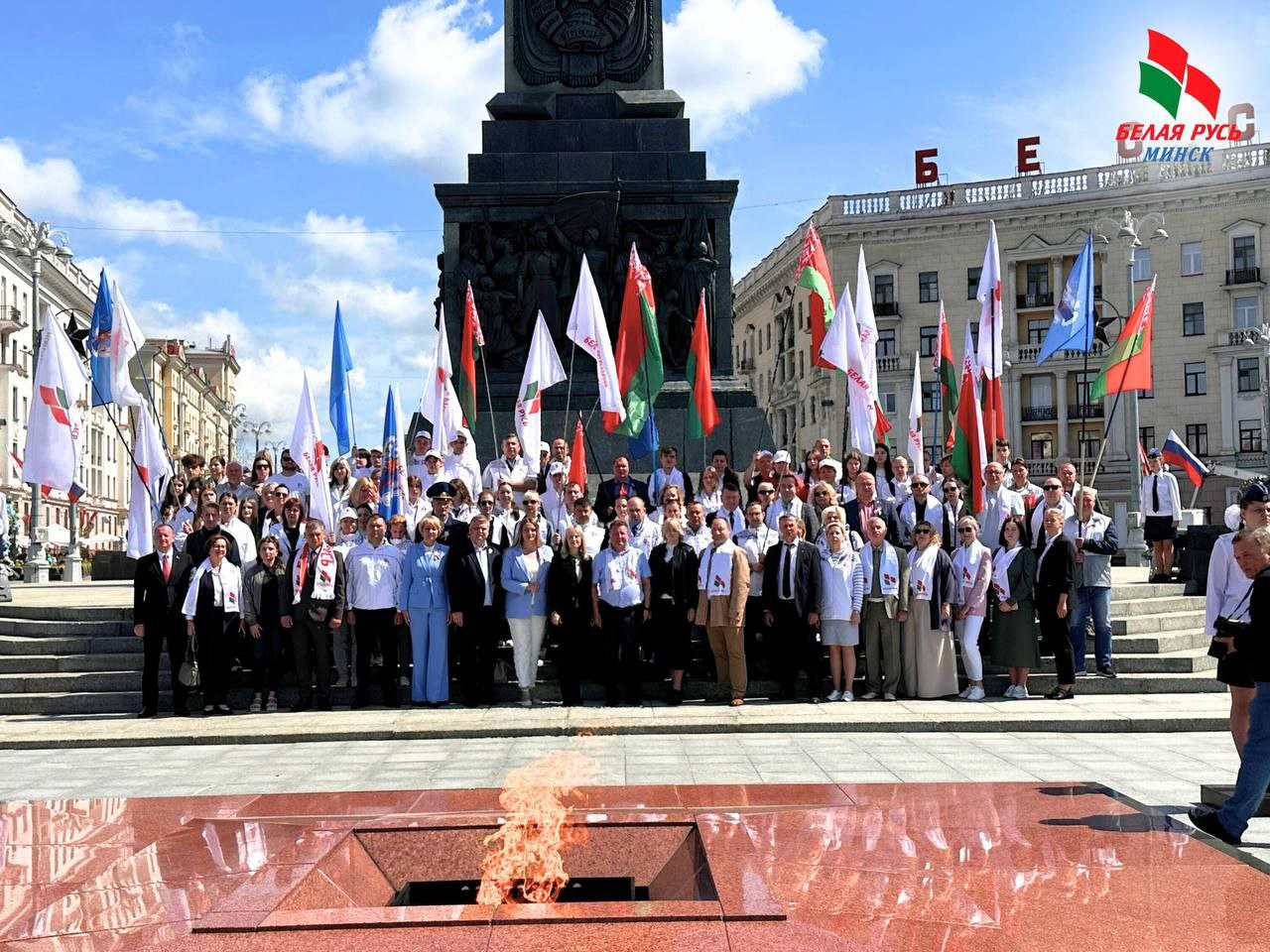 Актив Фрунзенской районной организации г. Минска РОО «Белая Русь» принял участие в церемонии возложения цветов к монументу Победы в рамках городской акции «Календарь и книга памяти», почтив память павших героев минутой молчания.