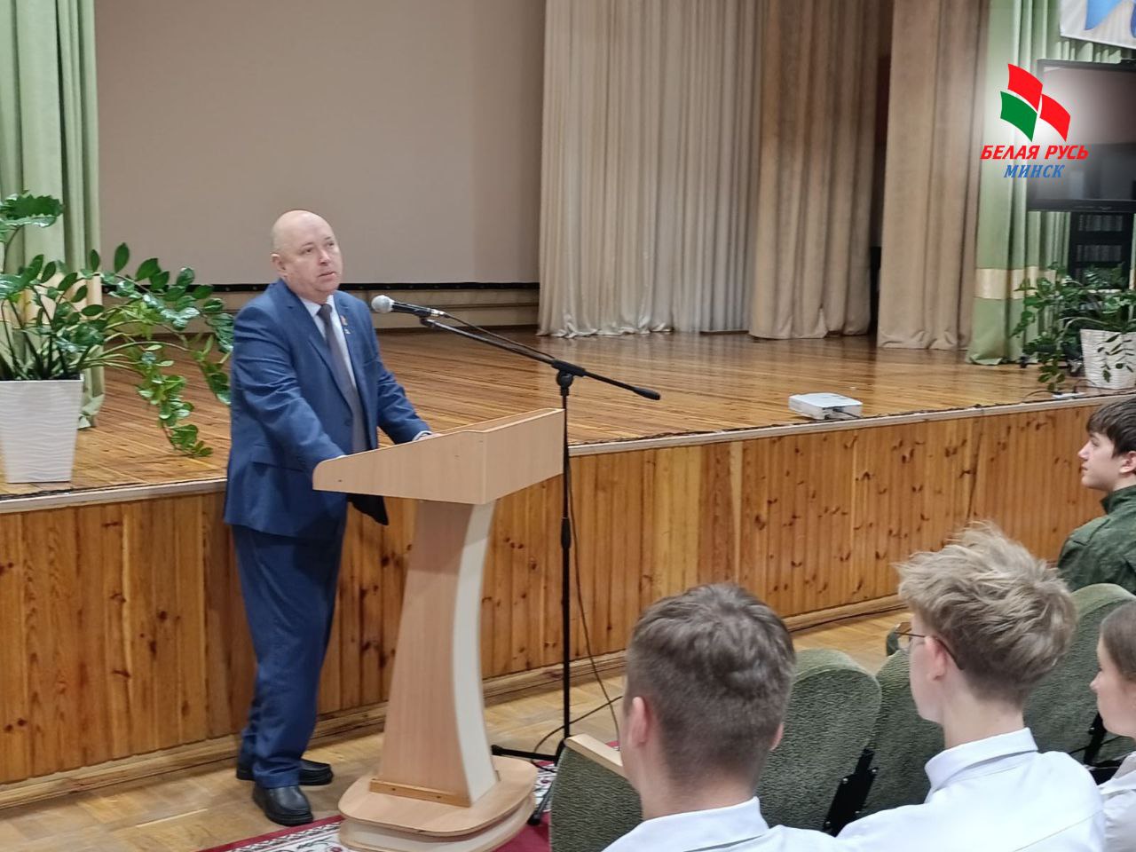 В военно-патриотическом лагере председатель Фрунзенской «Белой Руси» Игорь Тимашишин вместе с представителями военного комиссариата пообщались с юными патриотами  (https://t.me/gymn43/2598) о службе в белорусской армии до исторических фактов Беларуси и трагических событий геноцида белорусского народа во время Великой Отечественной войны.