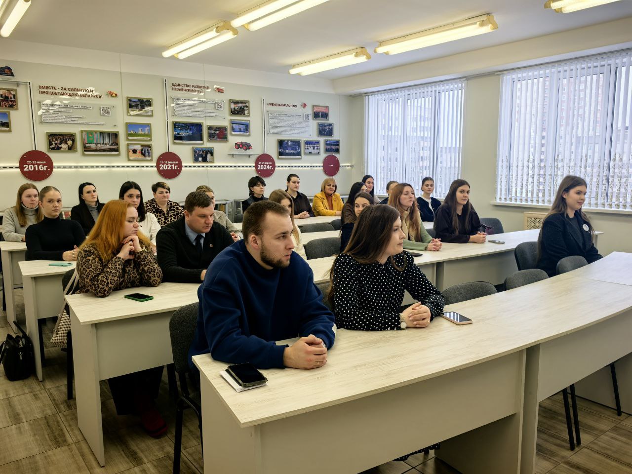 ✔️ В формате живого общения Марина Александровна поделилась с молодыми людьми информацией о сложном процессе работы депутата и значительной ответственности, лежащей на них при утверждении нормативных документов. Ключевой темой встречи стали вопросы, связанные с Всебелорусским народным собранием.