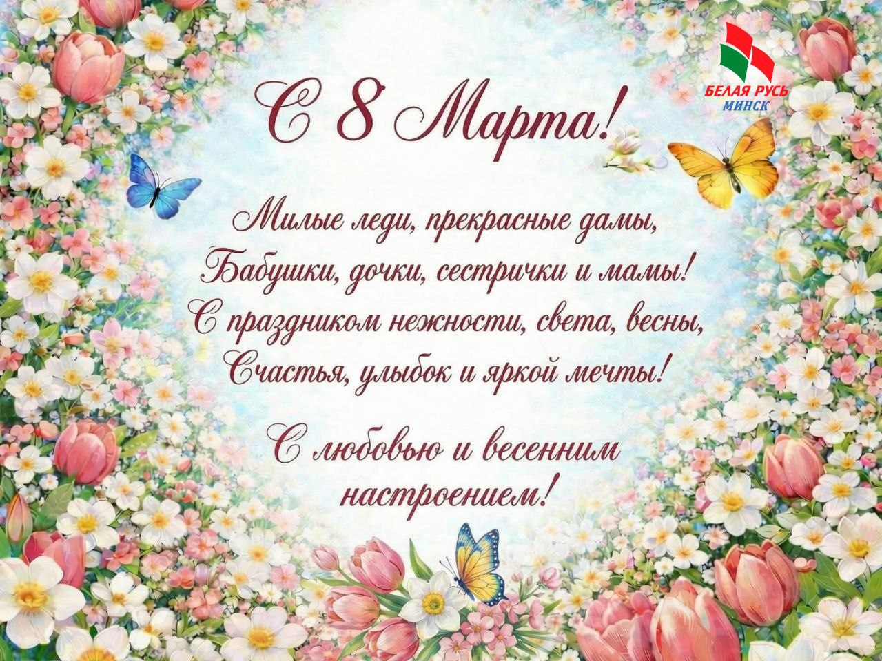 От имени Фрунзенской районной организации г. Минска РОО «Белая Русь» сердечно поздравляем вас с 8 Марта!