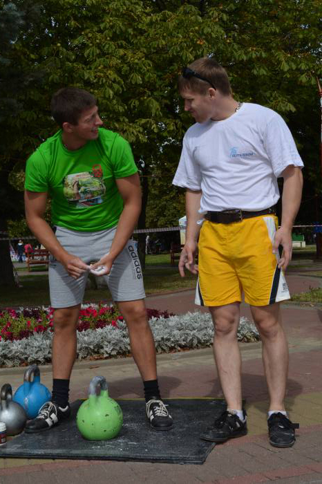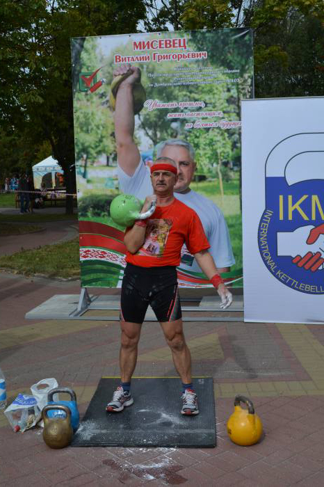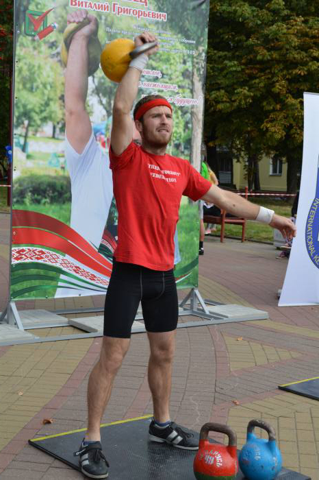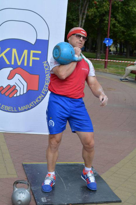 Лучшим в упражнении толчок гири (полумарафон) стал Виталий Павлюков, за 30 минут зафиксировавший над головой гирю 20 кг 621 раз. Алексей Смыкало уступил сопернику 27 повторений, и подняв в общей сложности 11 тонн 880 кг.