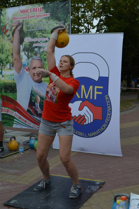 Отдельно хотелось бы отметить представительниц прекрасного пола. В упражнении рывок гири в течении 30 минут, развернулась острая борьба между Дарьей Шендриковой (Бобруйск) и Анной Ковтной (Светлогорск). Девушки держали в напряжении болельщиков все полчаса, так как пальма первенства переходила от одной к другой спортсменке. Всего 2 подъёма решили судьбу золотой медали. На этот раз Дарья стала первой с результатом 663 подъёма.