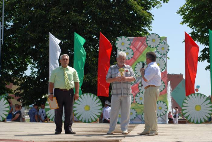 Визит в г.Любань начался с торжественных встреч и митингов, возложения цветов к памятным местам Любаньщины. После колонна проследовала на центральную площадь города, где гостей встретили зрители и руководство района в лице председателя Любаньского райисполкома Василий Акулич.