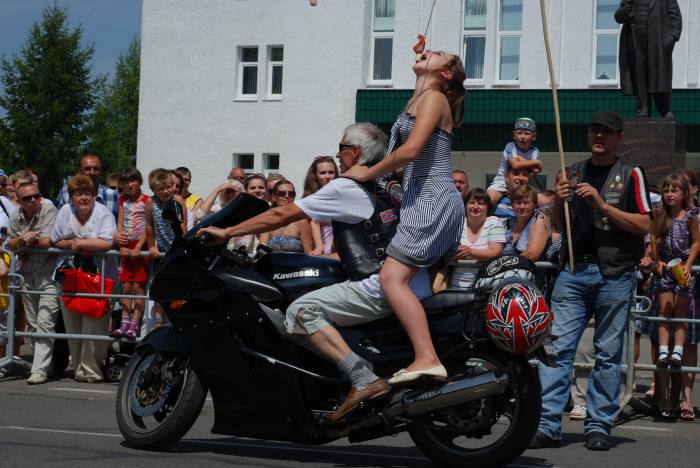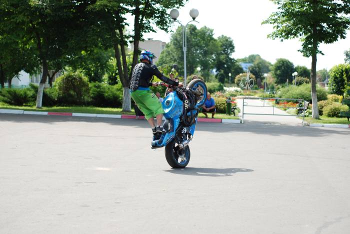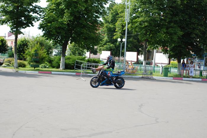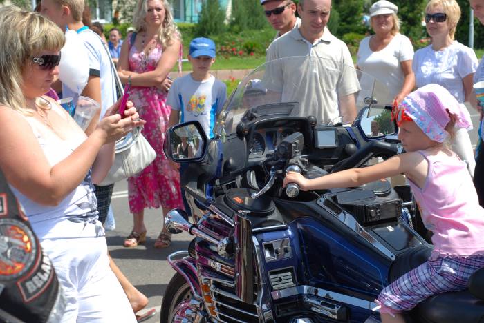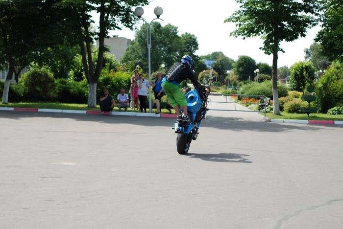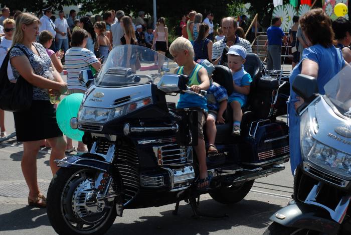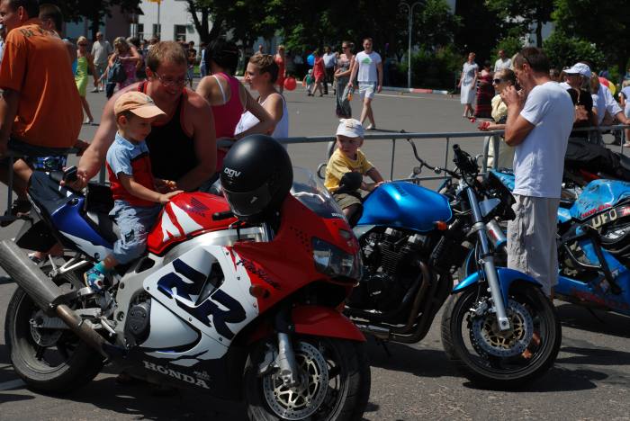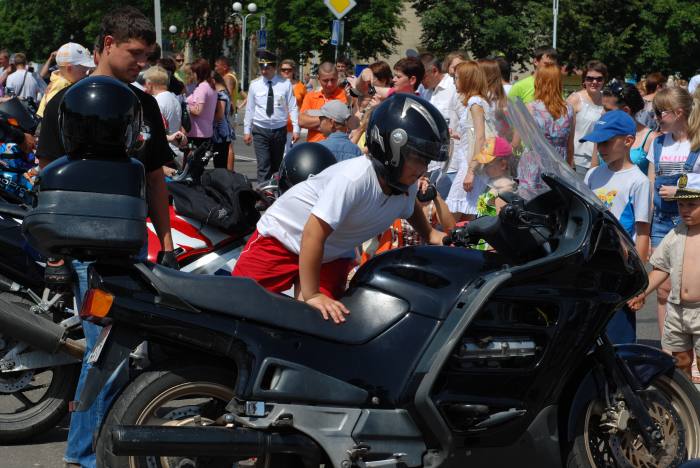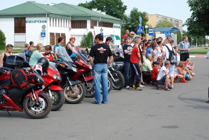 Финальным аккордом стали мотоциклисты, которые продемонстрировали фигурное вождение и прокатили всех желающих. Руководитель ОО «Минский мотоклуб «Жизнь в движении» Александр Тарасов рассказал о технических характеристиках представленных мотоциклов.