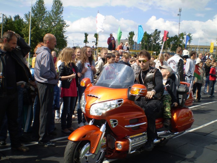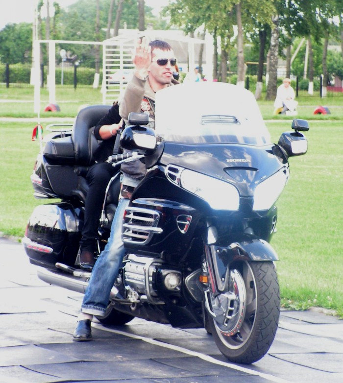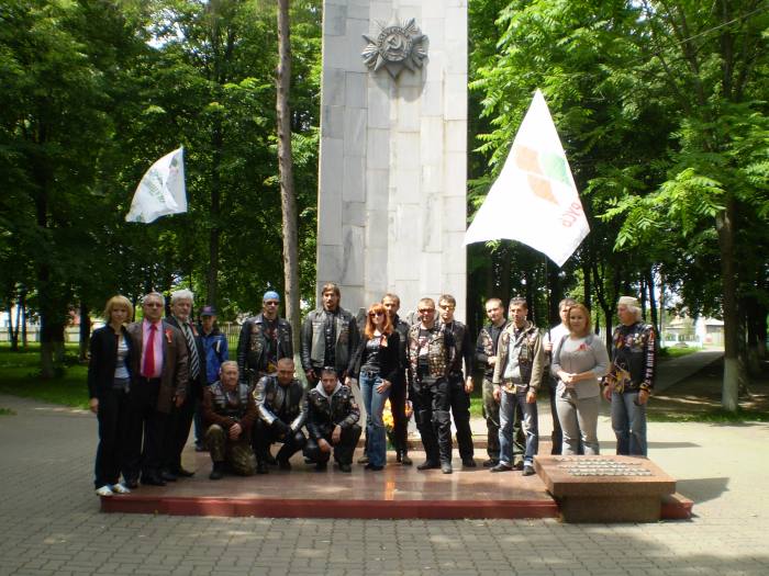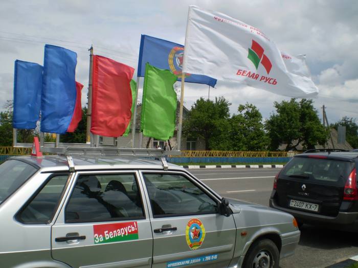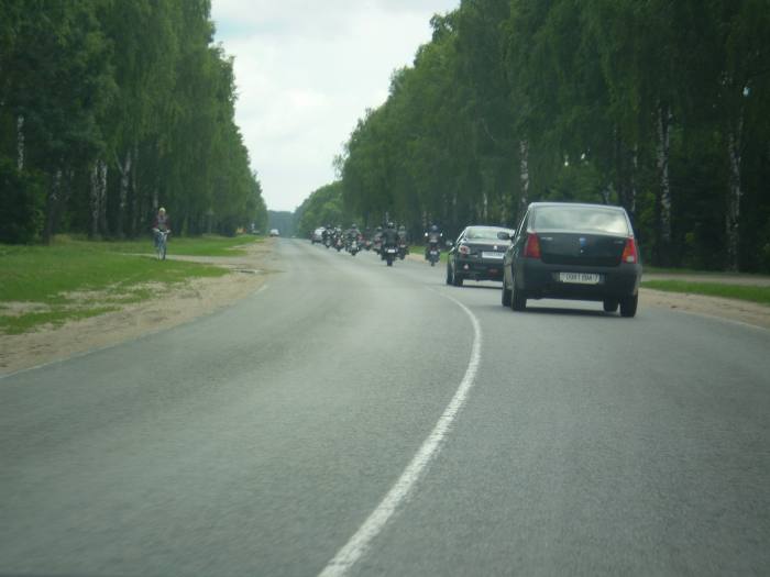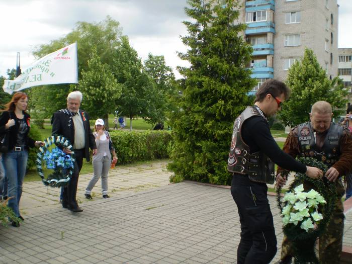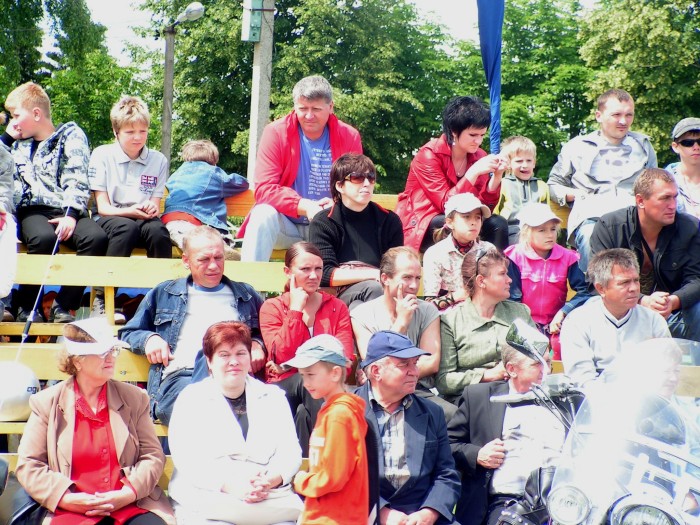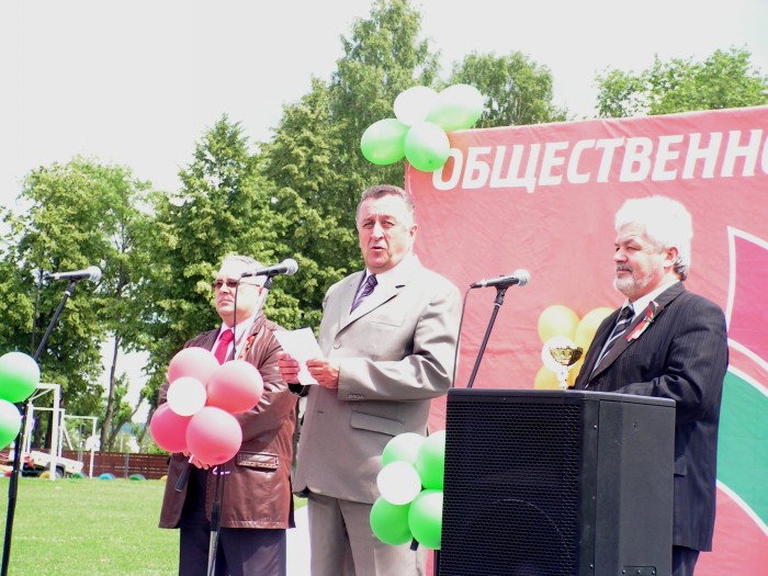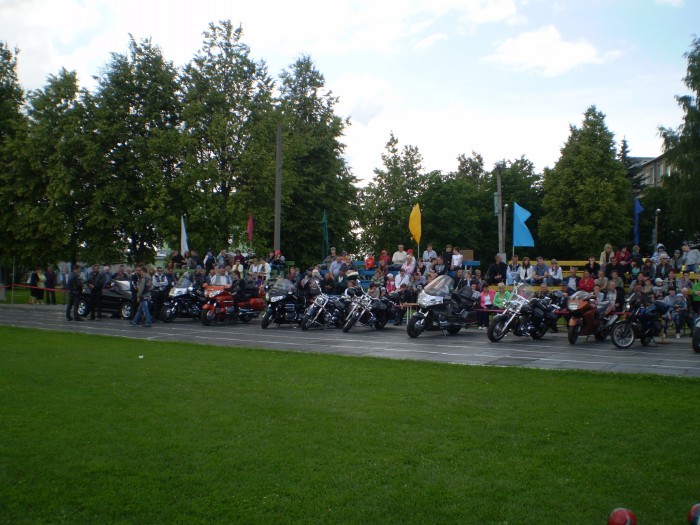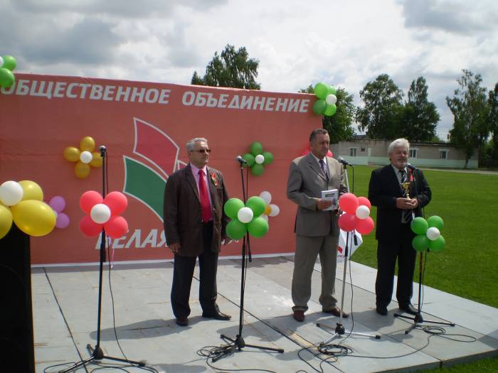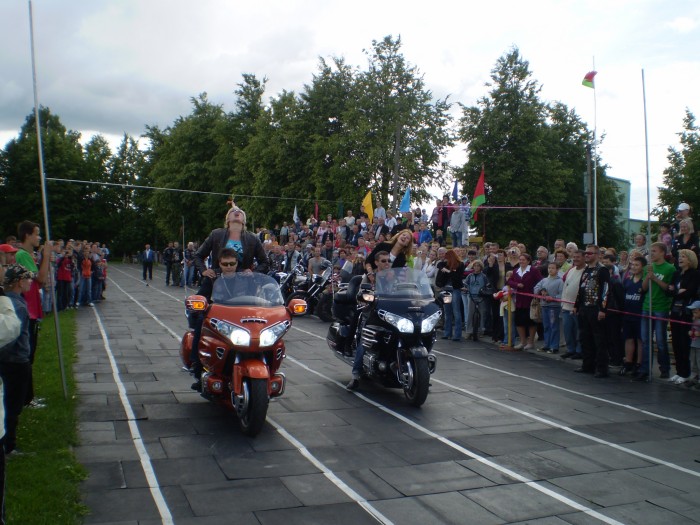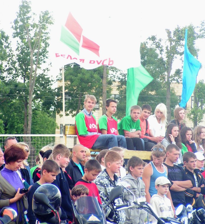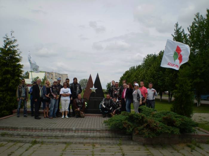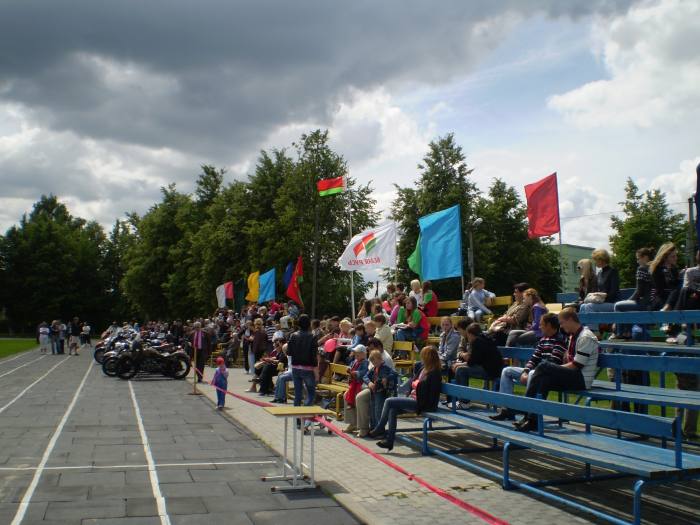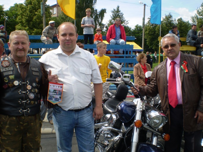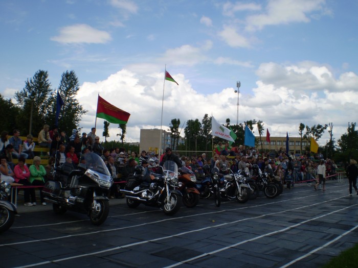 И вот в 11.00 в сопровождении автомобилей ГАИ кавалькада из 25 байков, 4 автомобилей двинулась в сторону МКАД. Проехав по ней несколько километров, автомотоагитпробег оказался на Брестской трассе. И вот, пролетев эти 70 км на стадионе г.Узда делегацию уже встречают председатель Узденского райисполкома Пахольчик Вячеслав Вячеславович и его заместитель, работники исполнительного комитета, активисты «Белой Руси», жители и гости райцентра.
