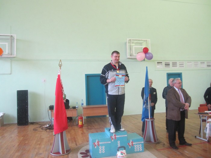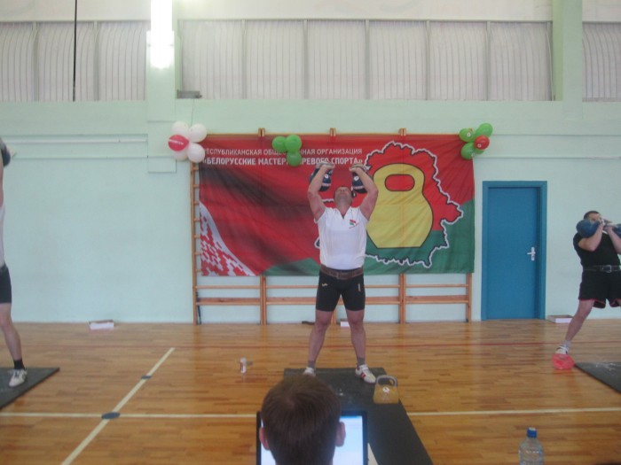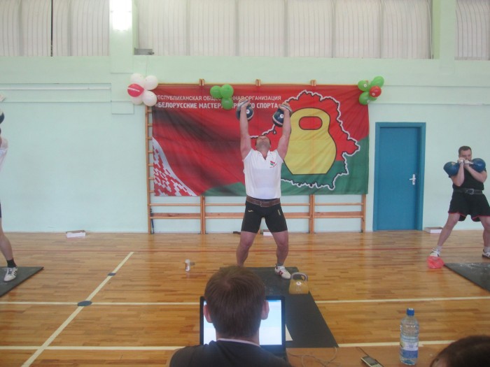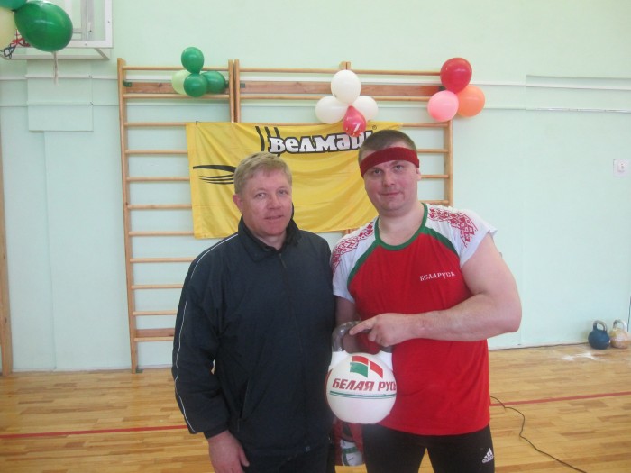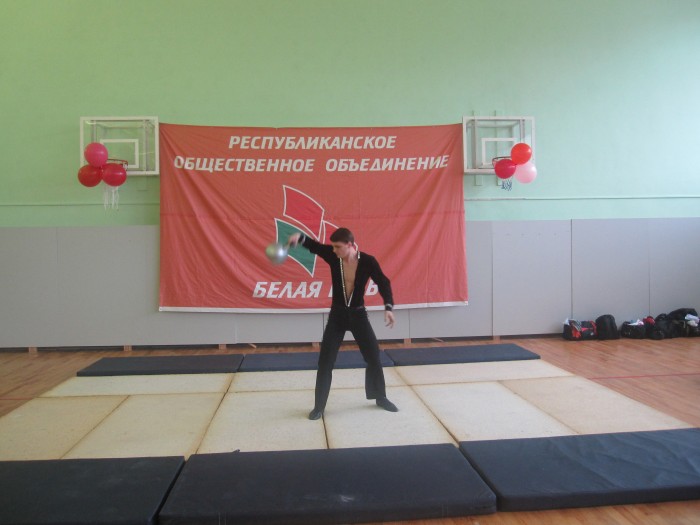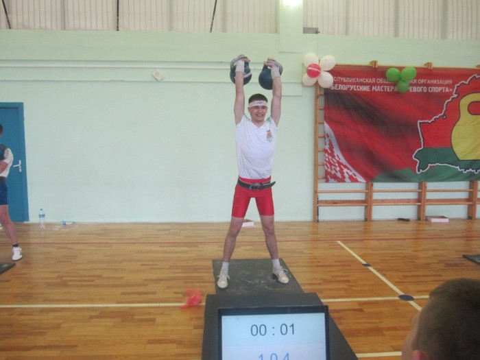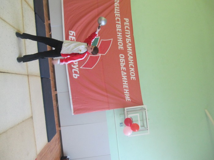 Активист Фрунзенской районной организации г. Минска РОО «Белая Русь» - Сергей Мацкевич установил мировой рекорд за 60 мин. поднял 24 килограммовую гирю 1746 раз.