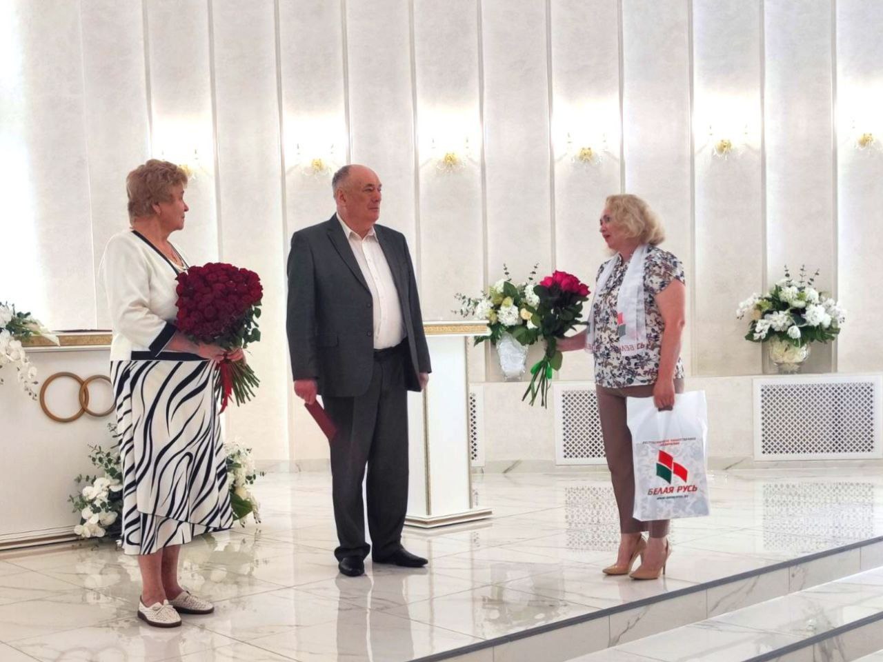 Со знаменательным событием поздравили супругов и представители Фрунзенской «Белой Руси».