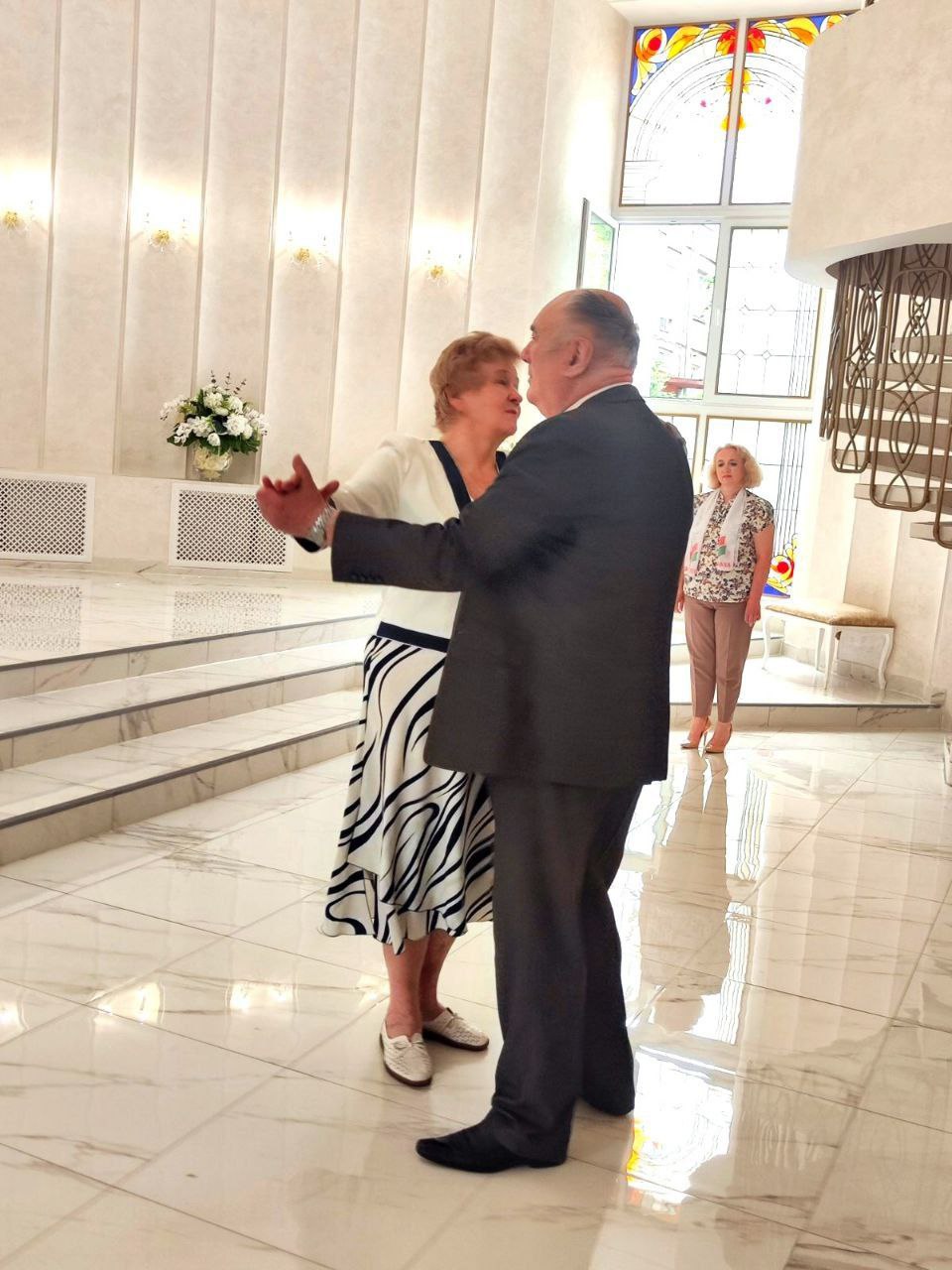По сложившейся традиции для них вновь прозвучал марш Мендельсона, пара оставила свои подписи в книге почетных юбиляров.