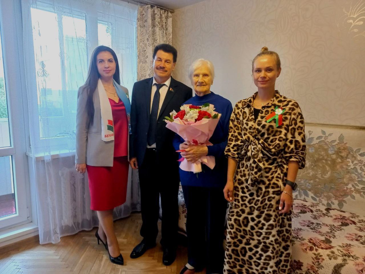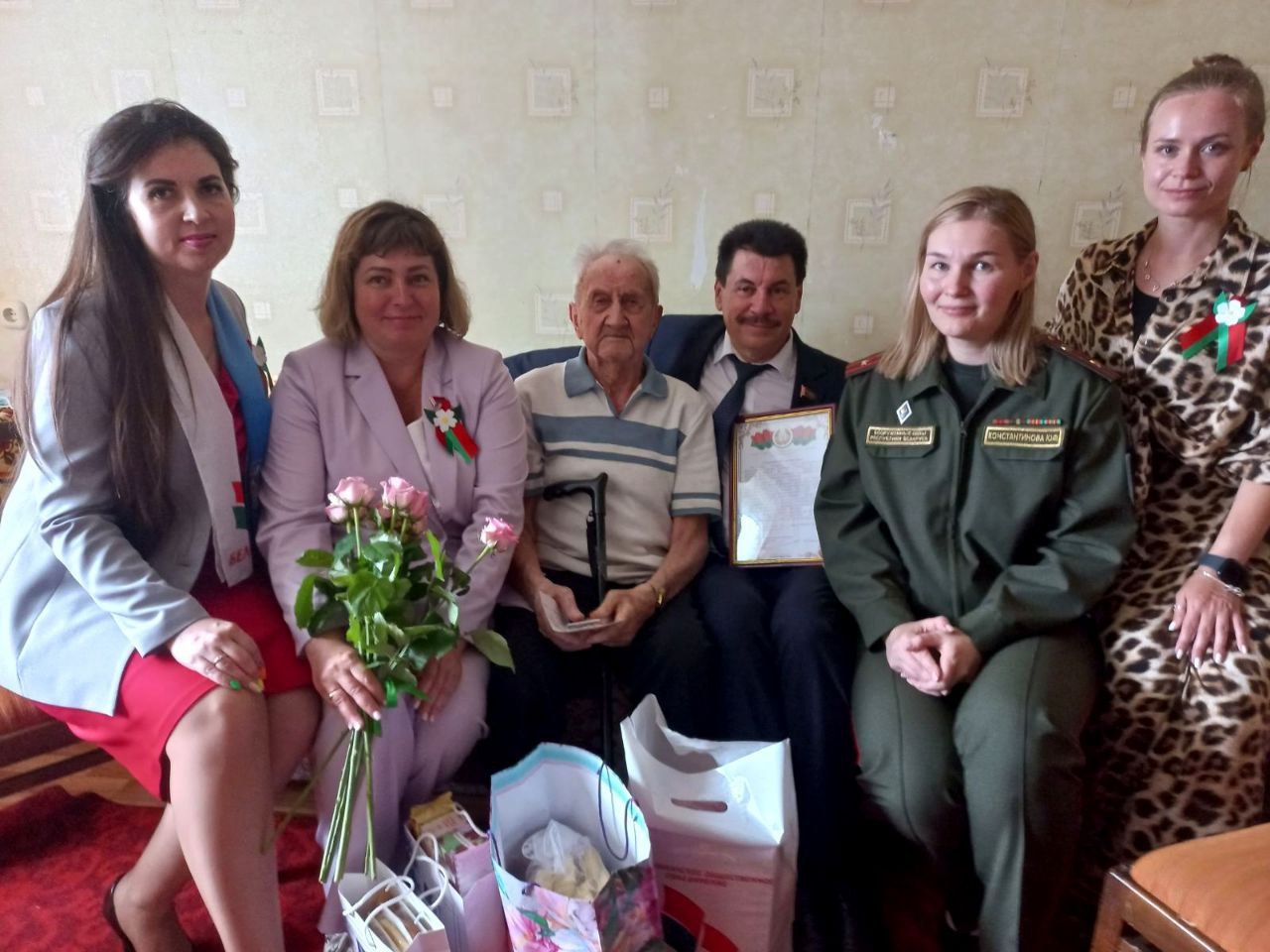 В преддверии празднования 80-летия освобождения Беларуси от немецко-фашистских захватчиков представители Фрунзенской «Белой Руси» чествовали ветеранов Великой Отечественной войны Иосифа Адасьевича Булата и Венеру Владимировну Курневич.