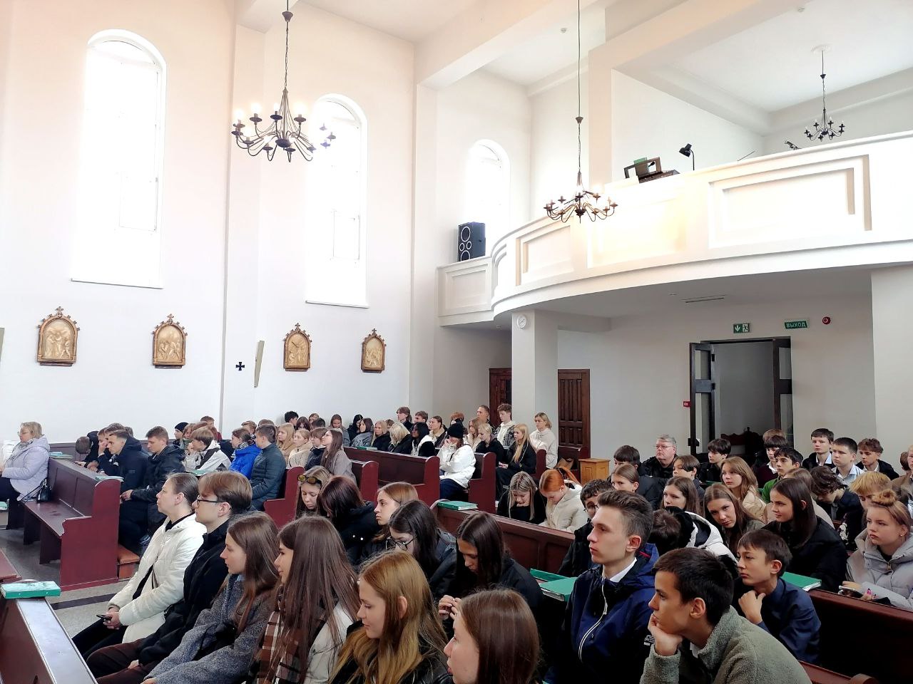 В рамках традиционной Недели родительской любви заместитель председателя Фрунзенской «Белой Руси» Анастасия Кимстач, учащиеся старших классов школ Фрунзенского района посетили с экскурсией костел Матери Божьей Будславской.