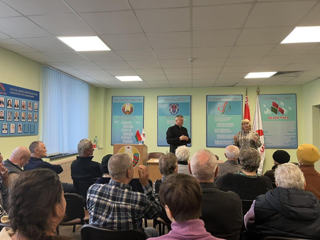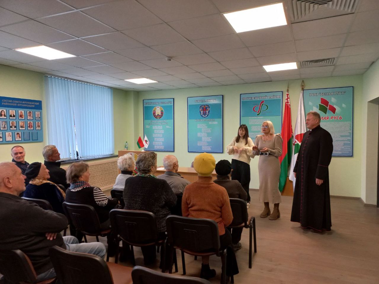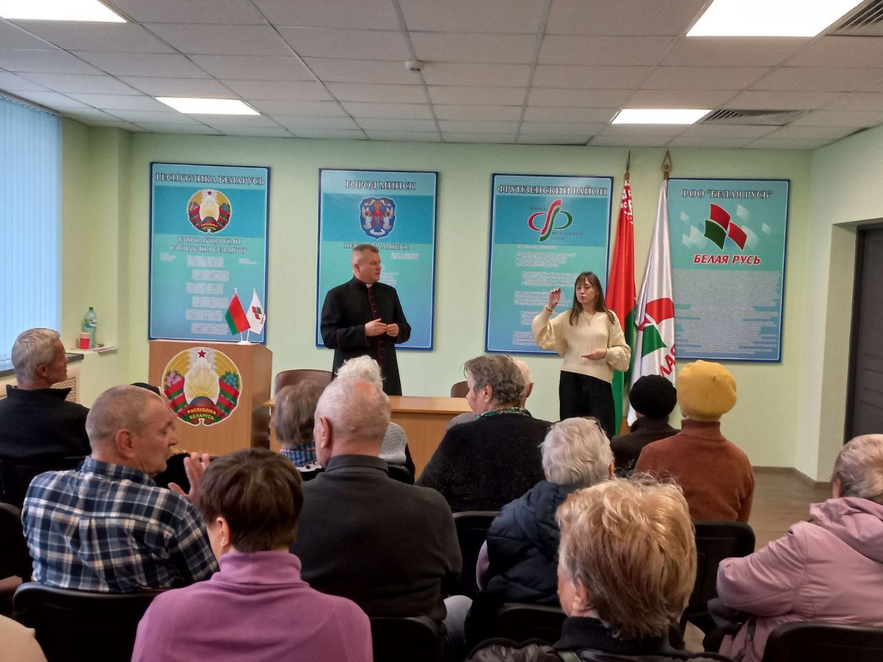 Открытый диалог объединил представителей Фрунзенской «Белой Руси», католической церкви и людей с ограниченными возможностями по слуху — посетителей Территориального центра социального обслуживания населения Фрунзенского района.