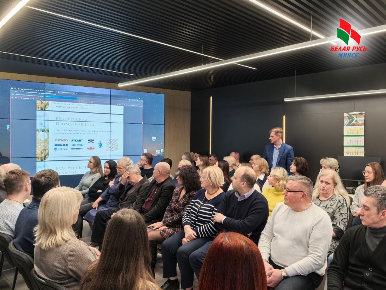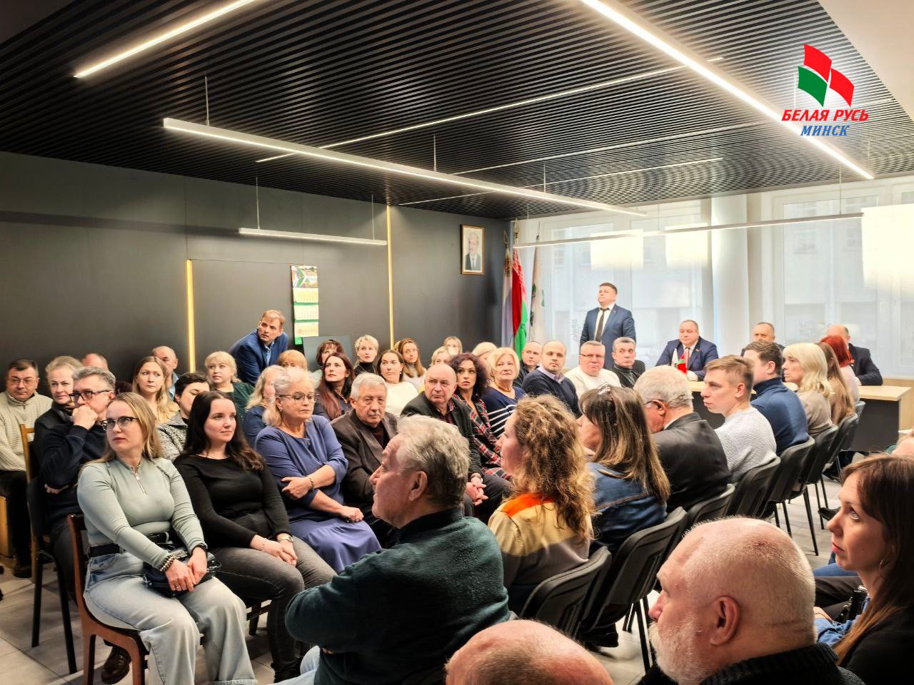 Спикеры встречи, депутат Палаты представителей Национального собрания Республики Беларусь Василий Панасюк и председатель Фрунзенской «Белой Руси» Игорь Тимашишин обсудили успехи нашей страны.