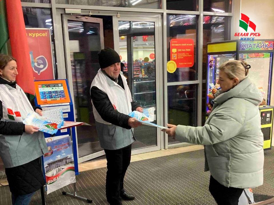 Активисты районной организации продолжают информировать граждан о ходе избирательной кампании по выборам Президента Республики Беларусь и приглашают принять активное участие в выборах.
