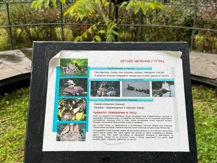 установлены стенды, на которых представлена познавательная информация о растениях, животных, насекомых и птицах, обитающих в данной местности. Протяжённость тропы составляет около 1000 метров.