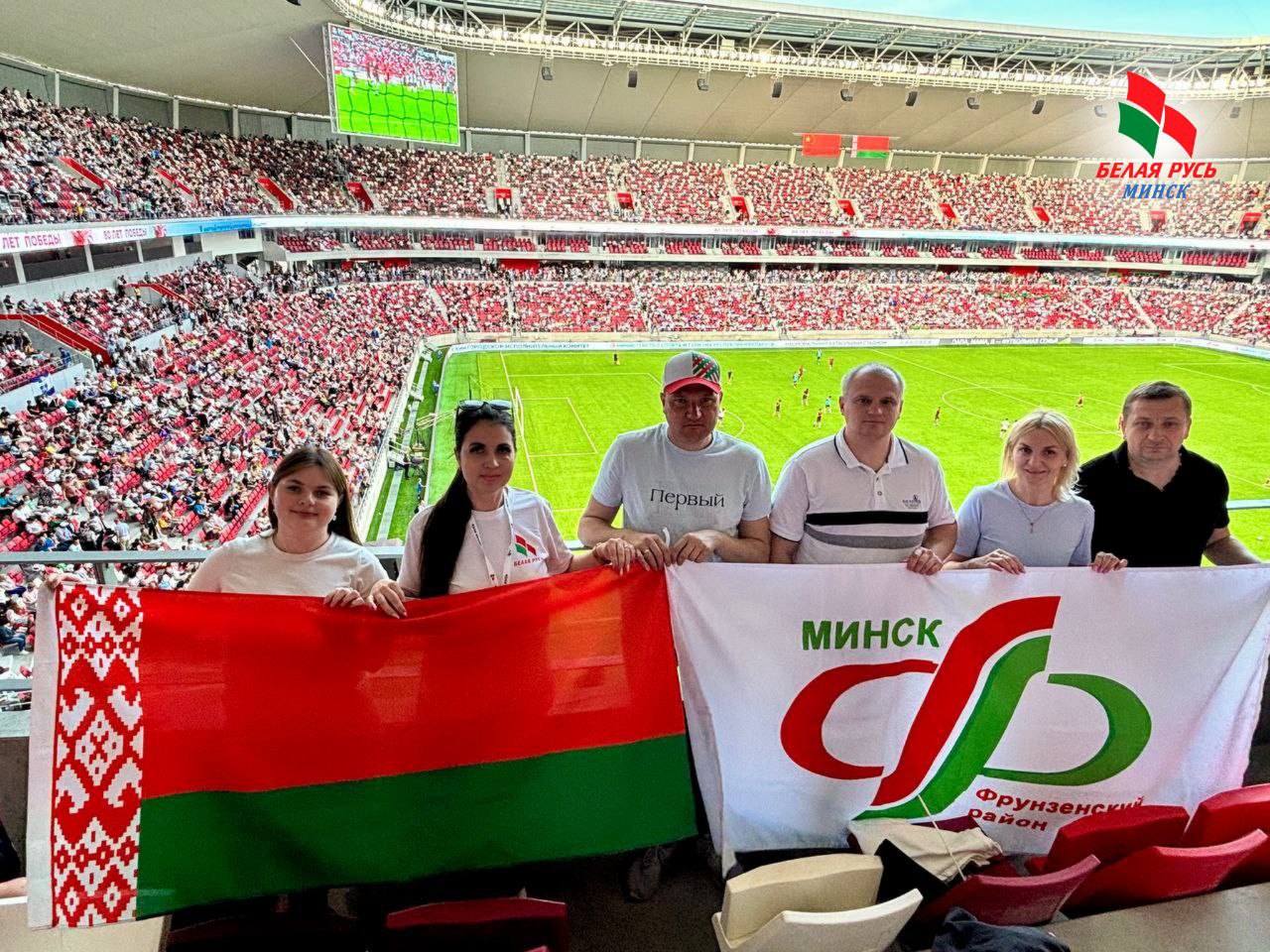 Представители Фрунзенской «Белой Руси» и делегация района активно поддерживали нашу команду с трибун нового стадиона, становясь частью этого исторического момента.