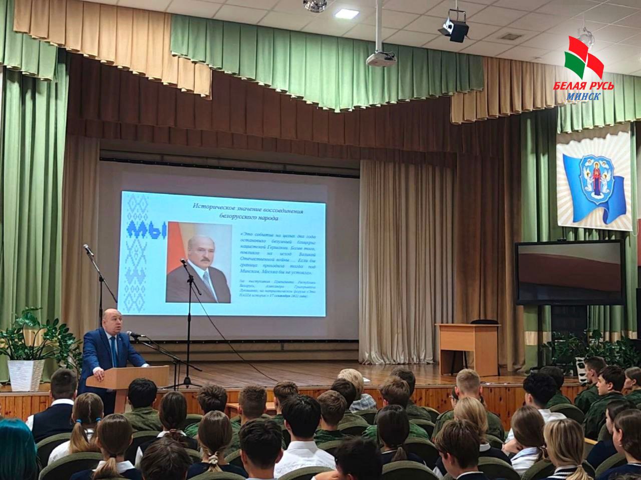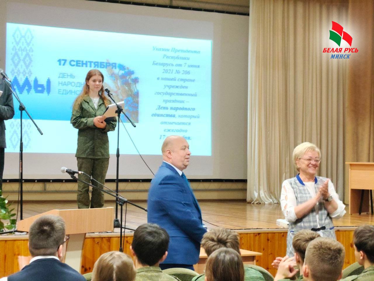 Председатель Фрунзенской «Белой Руси» Игорь Тимашишин рассказал о том, что объединяет нас как народ, о силе нашей страны и о том, как важно помнить прошлое, чтобы строить уверенное будущее. Ученики активно участвовали в обсуждениях, делились своими мыслями и узнавали новое.