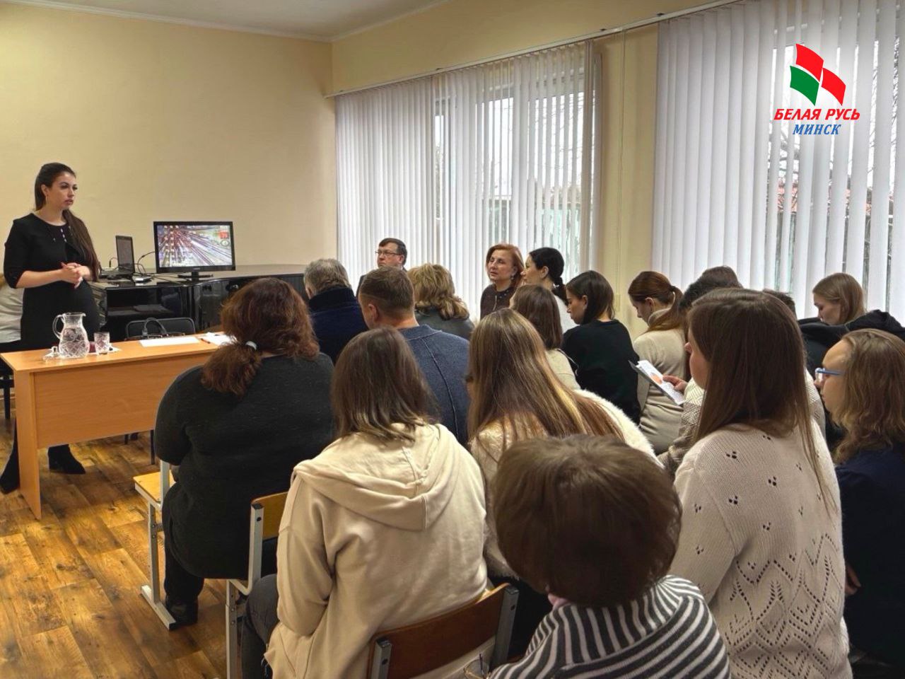 Заместитель председателя Фрунзенской «Белой Руси» Анастасия Кимстач рассказала об основных направлениях деятельности районной организации, её целях, задачах и форматах участия.