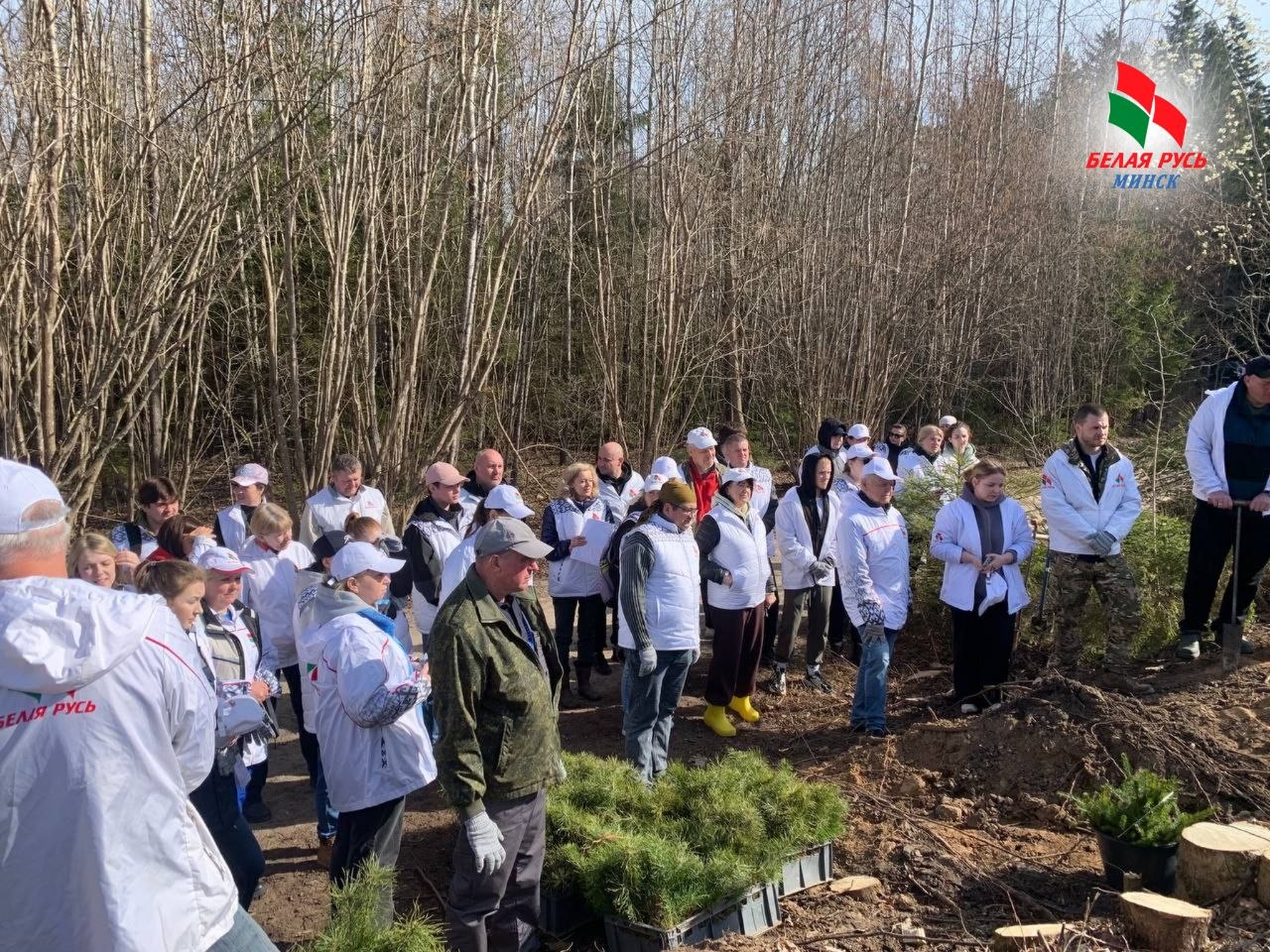 Выехали – большой компанией, более 100 человек. Среди нас – активисты Фрунзенской «Белой Руси», представители Республиканского аппарата, Минской городской и Минской областной организаций РОО «Белая Русь». Объединились не для отчёта, а для дела. Для будущего. Для леса, который через годы будет радовать новые поколения.