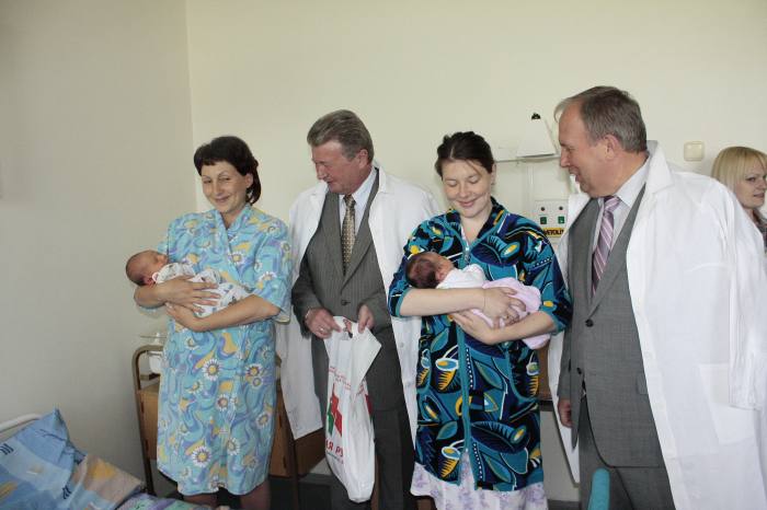 От «Белой Руси» рожениц поздравили: председатель Мингорсовета М.Ф.Саванович, первый заместитель председателя комитета по здравоохранению Мингорисполкома В.Д.Шило, представители администрации Фрунзенского района г.Минска и Фрунзенской районной организации.