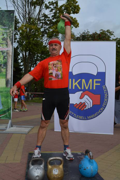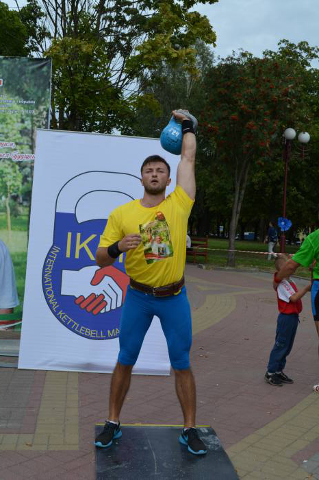 Лучшим в упражнении толчок гири (полумарафон) стал Виталий Павлюков, за 30 минут зафиксировавший над головой гирю 20 кг 621 раз. Алексей Смыкало уступил сопернику 27 повторений, и подняв в общей сложности 11 тонн 880 кг.