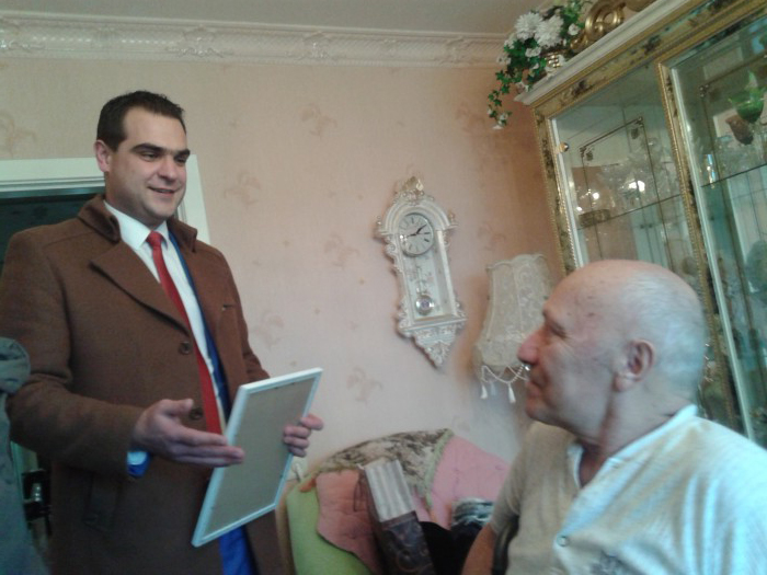 Они посетили юбиляра на дому, вручили ему почетные грамоты и подарки, пожелали хорошего здоровья и успехов на общественном поприще.