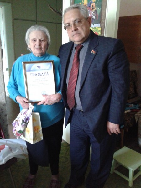 5 мая 2017 г. Депутат Палаты представителей Национального собрания Республики Беларусь Виталий Мисевец совместно с представителями профсоюзов и РОО «Белая Русь» поздравил ветеранов-юбиляров с праздником Великой Победы.