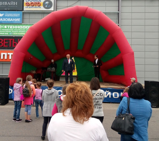 Приветственное слово перед началом праздничного концерта жителям микрорайона сказал депутата Палаты представителей Национального собрания Республики Беларусь, председатель Фрунзенской районной организации г.Минска РОО «Белая Русь» – Мисевец Виталий Григорьевич.