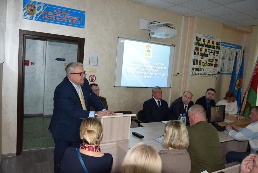 Депутат отметил большой вклад районной организации ДОСААФ в развитие гражданского общества, в военно-патриотическое воспитание молодежи, большую работу во взаимодействии с районными структурами общественных объединений и политических партий района, особенно с «Белой Русью», районной властью, учреждениями образования района, роль, место и значимость совместно проводимых мероприятий. Имея большой опыт работы с общественными организациями, депутат Мисевец дал высокую оценку деятельности организации, выразил надежду на дальнейшее сотрудничество в проведении автомотоагитпробегов, автомногоборья, дальнейшем развитии технических видов спорта в районе: стрелковому, авиа-, авто-, судо-, ракетомоделировании, пообещал и впредь оказывать всяческое содействие как районному ДОСААФу, так и администрации района, учреждениям образования в продвижении имиджа и авторитета Фрунзенского района и его граждан.