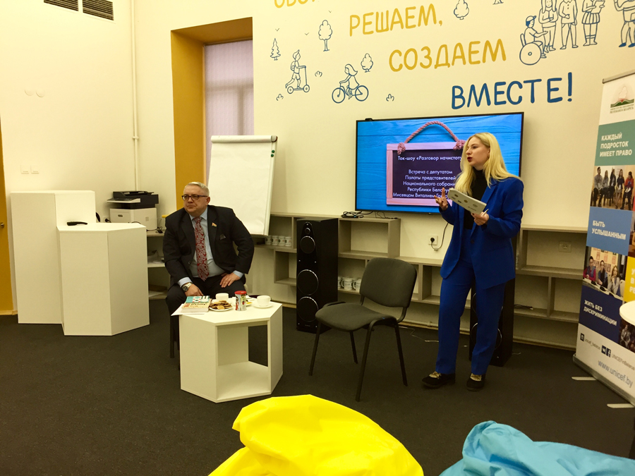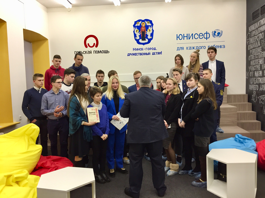В преддверии выборов в Местные Советы ребятам было особенно интересно пообщаться с человеком, прошедшим все ступени становления народного депутата. По мнению молодежи Виталий Григорьевич оказался приятным и открытым собеседником, который на одной волне с молодым поколением. За время беседы гость и ребята успели затронуть абсолютно разные вопросы, начиная с личных качеств депутата Мисевца, планирования рабочего времени, вопросов формирования программы кандидата в депутаты, обсуждаемых в Парламенте законопроектов, личного отношения к процессам, происходящих в стране, в столице, возможности повлиять на белорусский электорат, акцентирование внимания на активность молодежи до вопроса создания арт-объектов в городе, посредством рисунка в стиле граффити. Во время мероприятия Виталий Григорьевич презентовал книгу, посвященную 100-летию со дня рождения выдающегося политического и общественного деятеля Петра Мироновича Машерова и подарил ее Лиге. В свою очередь ребята поблагодарили гостя и не оставили его без памятного подарка.