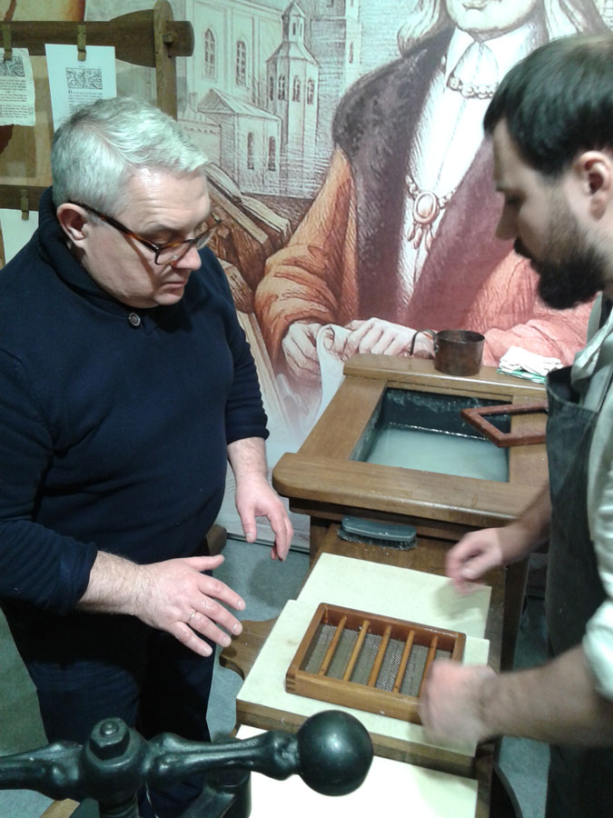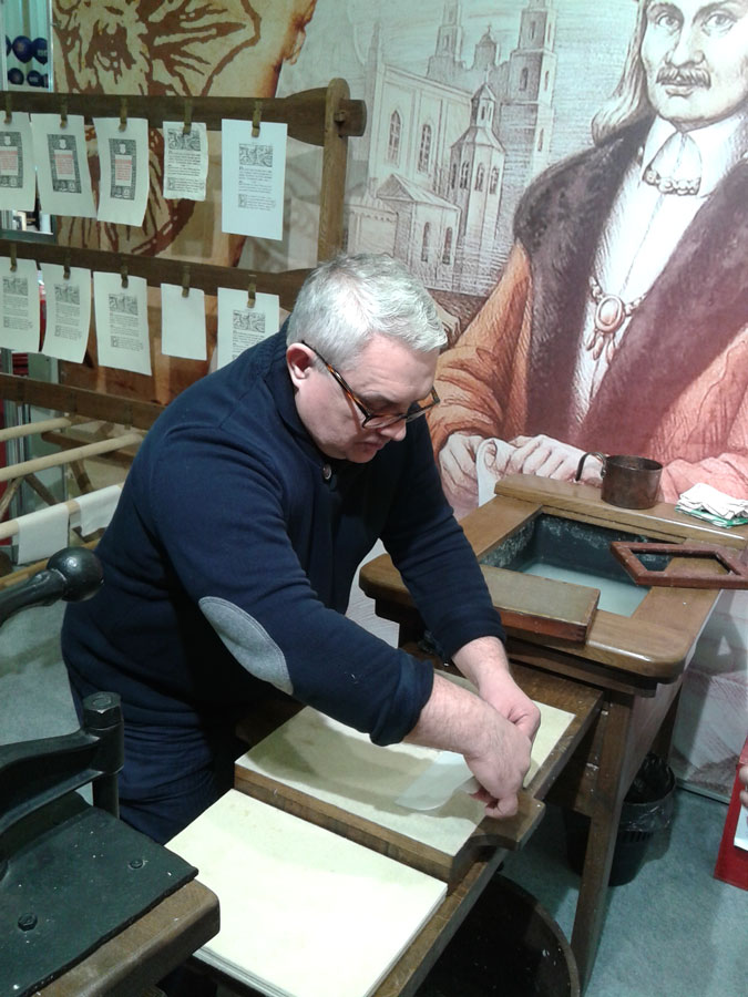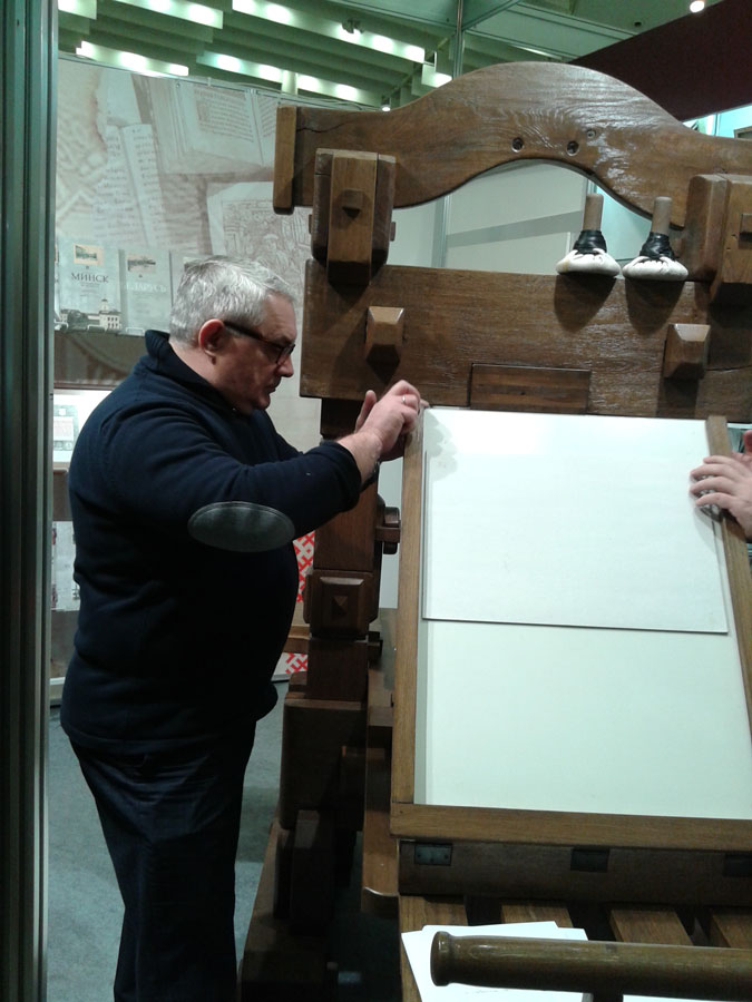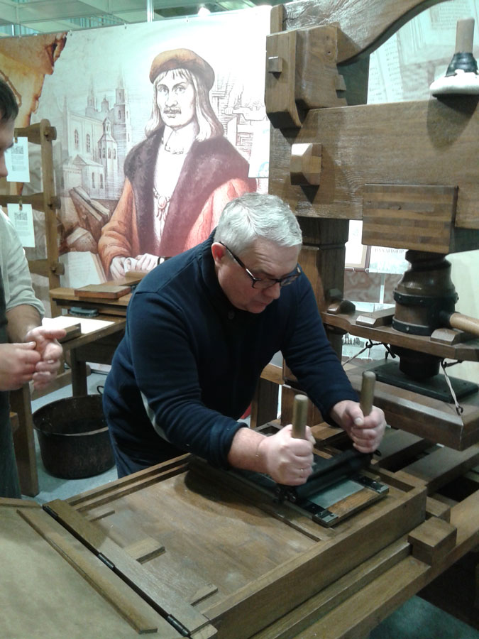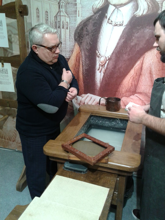 Кроме этого, депутат посетил «Печатный двор», где самостоятельно изготовил бумагу и напечатал лист Библии Франциска Скорины на станке XVI века.