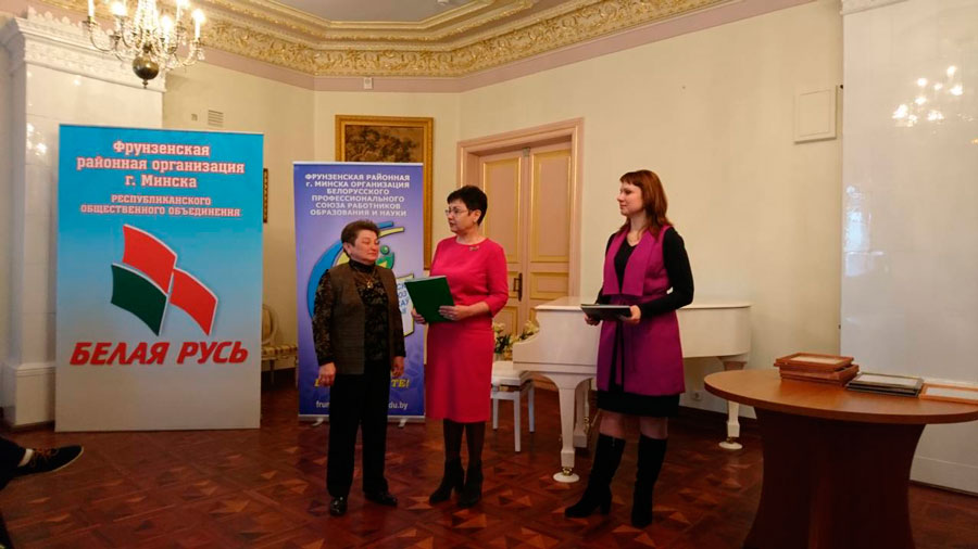 В одном из залов усадьбы состоялась церемония награждения членов РОО «Белая Русь» и профсоюзных активистов за участие в общественно-политической жизни Фрунзенского района.