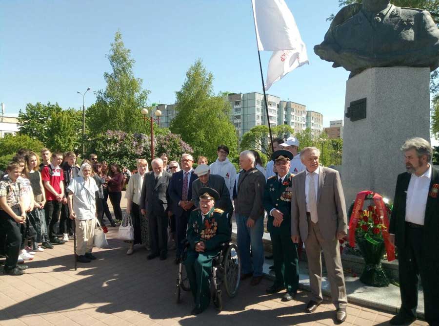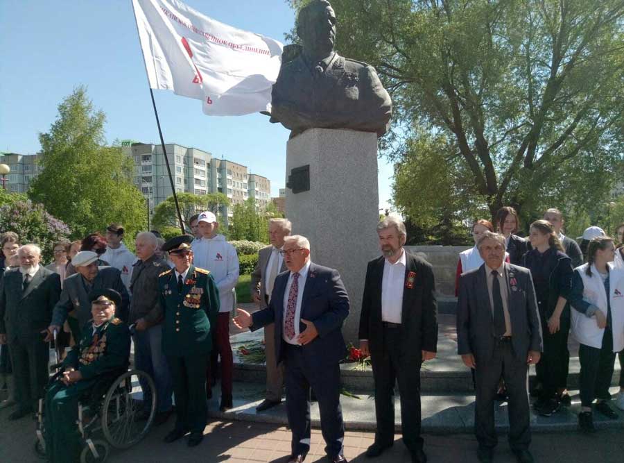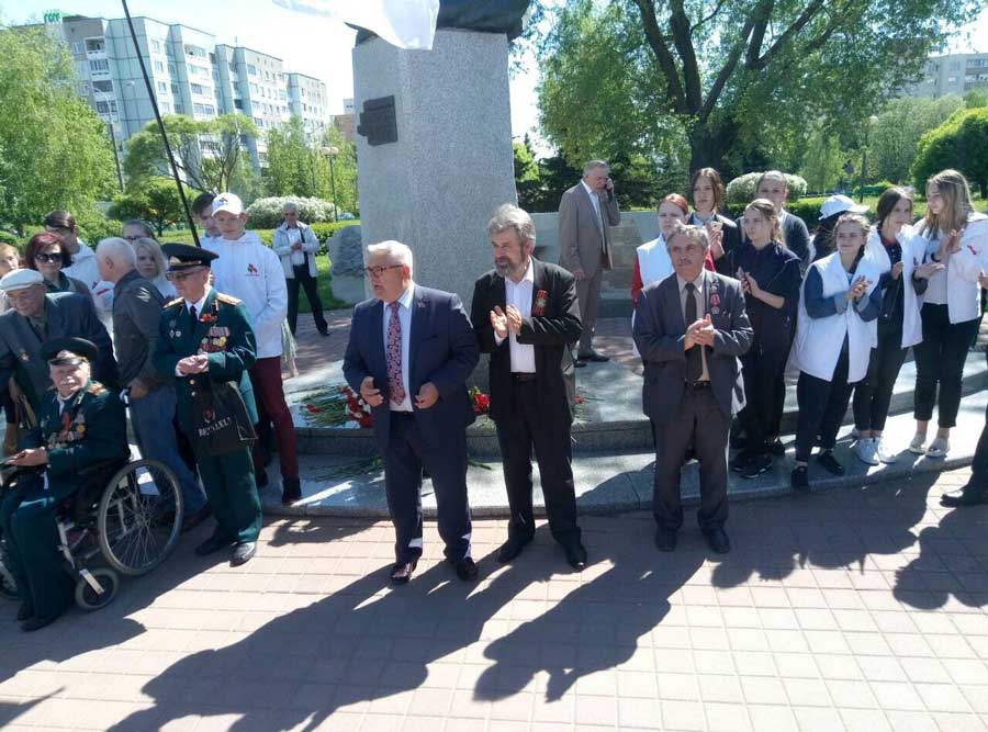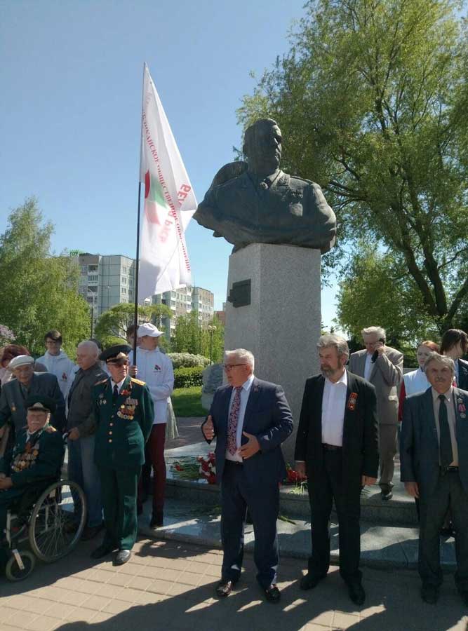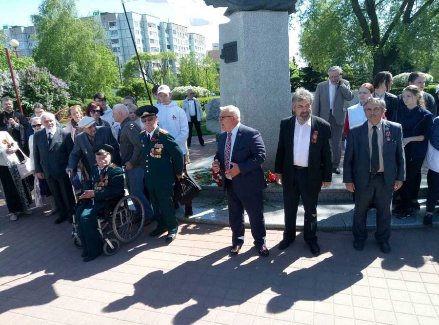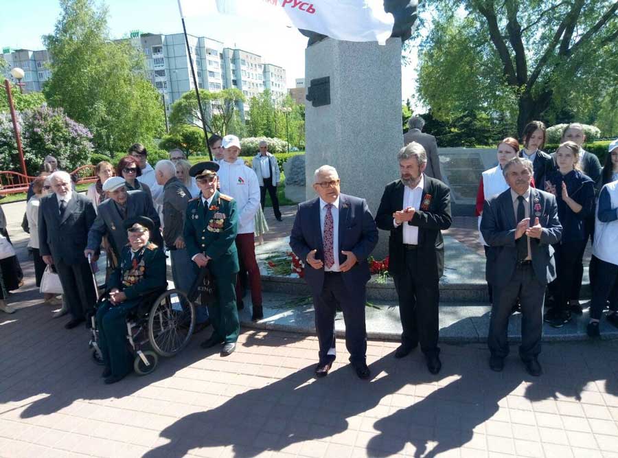 Депутат Мисевец выступил с речью, обращаясь прежде всего к молодому поколению со словами сохранения исторической памяти о войне, о передачи ее через поколения, книги, фильмы, рассказы, о жертвах, о погибших, о трепетном отношении к живущим свидетелям войны – ветеранам, о мире и миролюбии Беларуси.