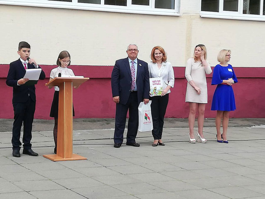 На торжественной линейке в ГУО «Средняя школа № 179» Виталий Григорьевич от имени РОО «Белая Русь» передал младшим школьникам детские книги и отметил, что только благодаря трудолюбию, ответственному отношению к учебе, потребности познавать и осваивать новое можно стать настоящим профессионалом, мастером своего дела, приносящим пользу не только своим близким, но и всей стране.