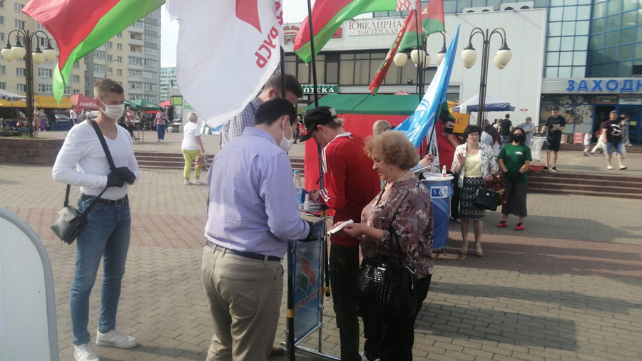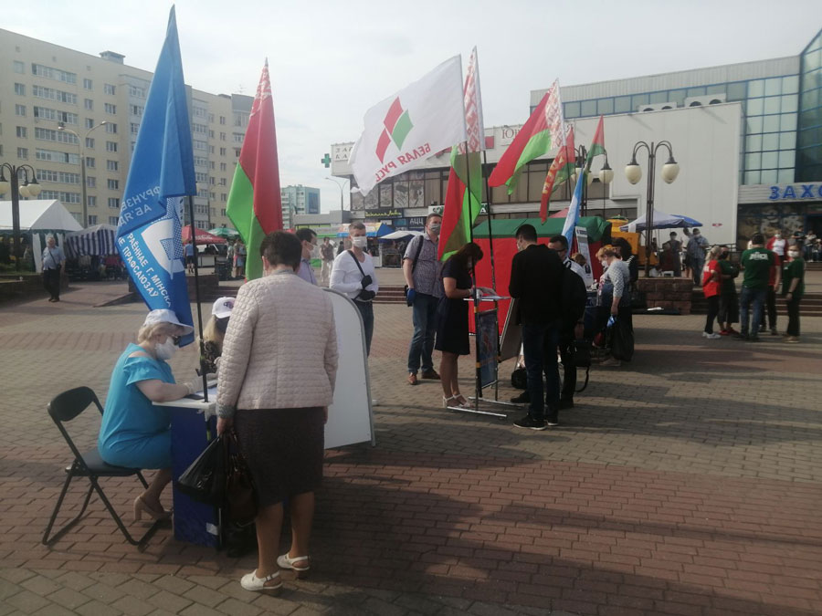 16 июня активисты Фрунзенской районной организации г.Минска РОО «Белая Русь» - члены инициативной группы в поддержку выдвижения действующего Президента Александра Лукашенко в кандидаты в Президенты Республики Беларусь организовали на площади у рынка «Заходнi» проведение пикета по сбору подписей.
