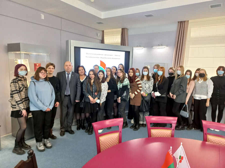 Председатель Фрунзенской районной организации г. Минска РОО «Белая Русь» Тимашишин И.В. рассказал молодым людям, как проводился сбор предложений и дополнений в Конституцию Республики Беларусь, как велась подготовка к референдуму в феврале 2022 года, какие новые статьи внесены в главный закон страны.