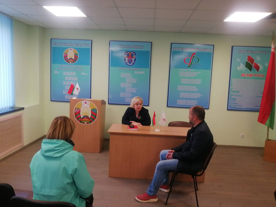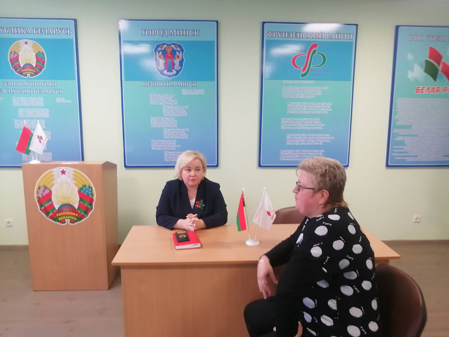 7 сентября 2022 года состоялся приём граждан в общественной приёмной Фрунзенской районной организации г.Минска РОО "Белая Русь" директором ГП "Комбинат школьного питания города Минска", депутатом Мингорсовета Лукашевич Надеждой Владимировной.