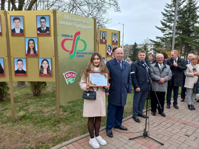 Председатель Фрунзенской «Белой Руси» Игорь Тимашишин поблагодарил молодых людей за их вклад в развитие и процветание родного Фрунзенского района и пожелал им новых успехов, достижений и побед.