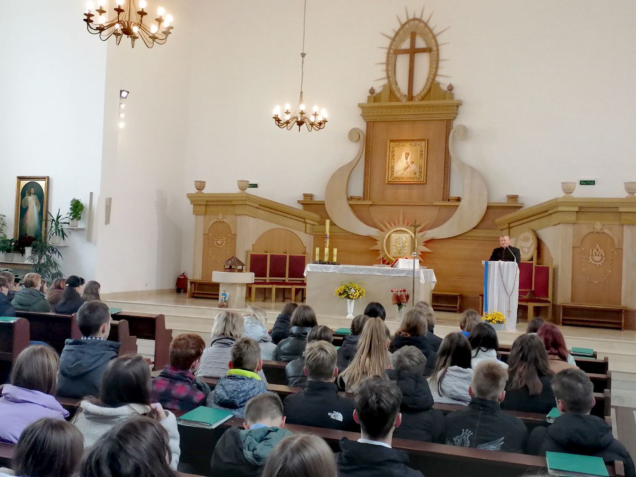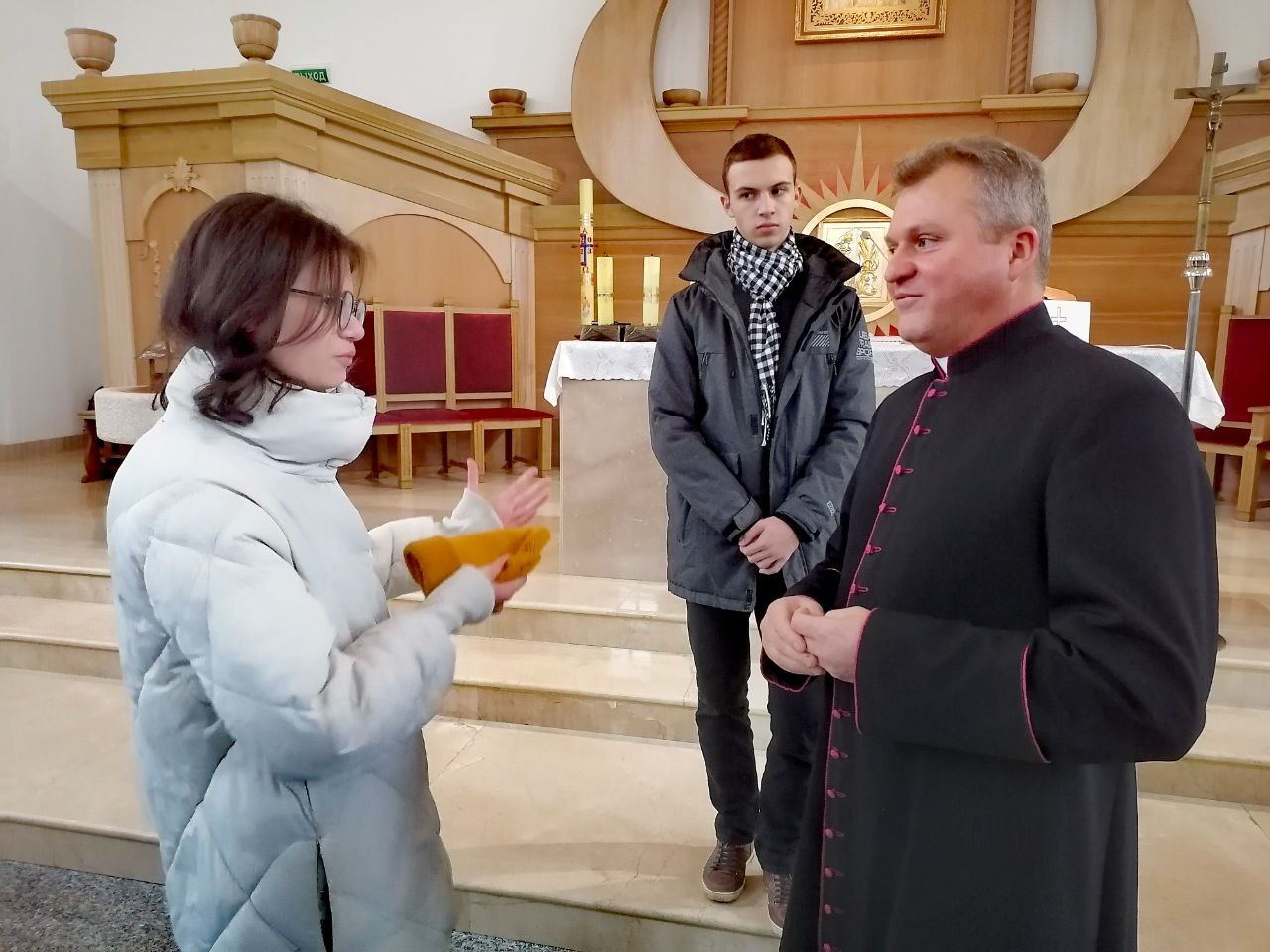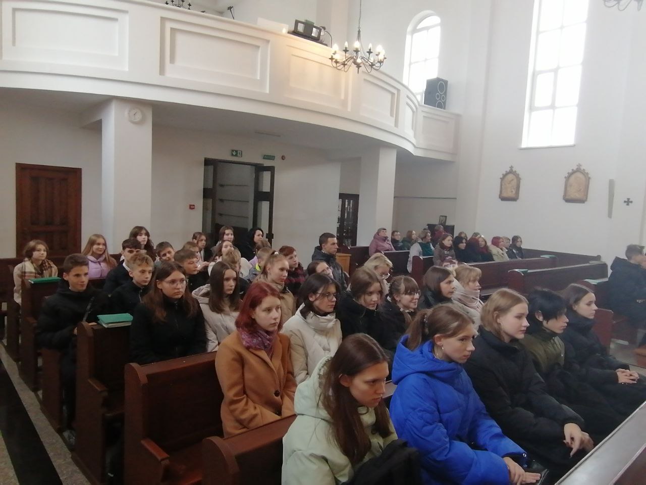 Во время посещения костела состоялась теплая беседа с настоятелем Франтишеком Рудем. Говорили о семейных традициях, о вере, уважении к старшим, Родине. В центре внимания были такие понятия, как доброта, взаимопомощь, уважение, милосердие.