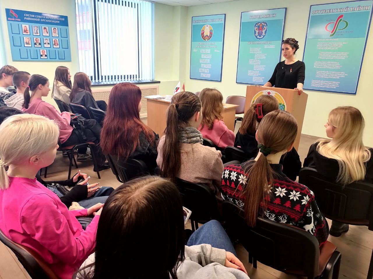 Учащимся Минского государственного колледжа технологии и дизайна лёгкой промышленности рассказали о предстоящей избирательной кампании, о том, как функционирует государственная власть в стране, и почему во время проведения выборов и голосования важен каждый голос.