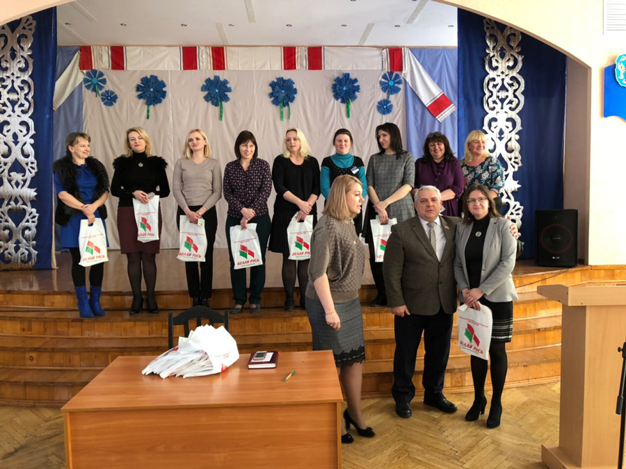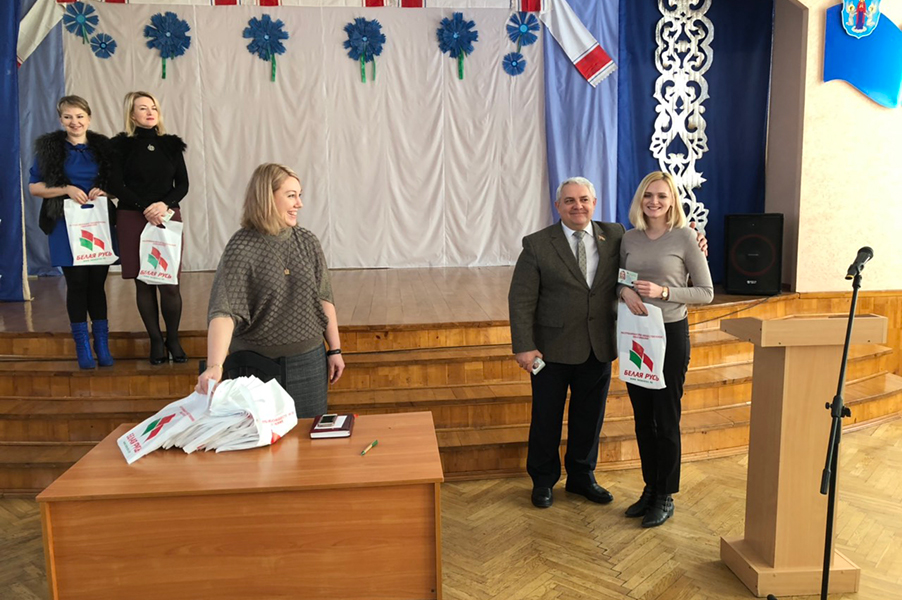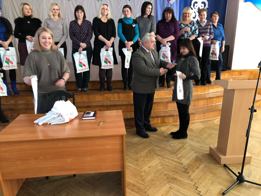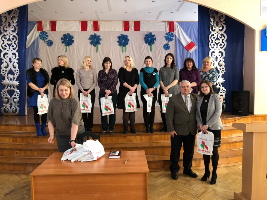 Председатель первичной организации Никифорова Алла Николаевна отметила важность события и ценность сознательного выбора, сделанного молодыми людьми, и подчеркнула, что «Белая Русь» сплотила весь коллектив школы, объединила его общими идеями и планами, и выразила уверенность в том, что общее количество членов первички обязательно достигнет стопроцентного состава трудового коллектива школы.