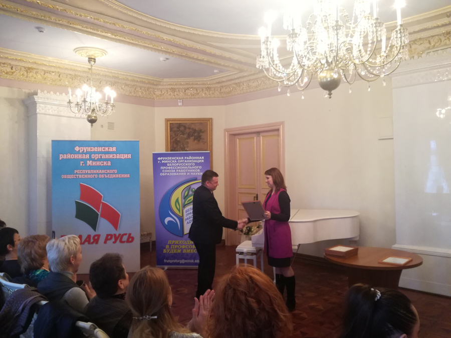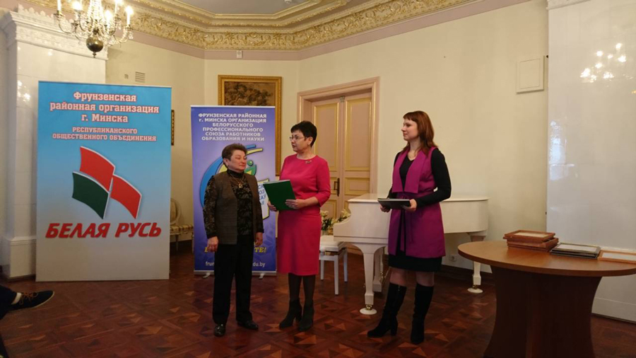 Заместитель председателя Минского городского объединения профсоюзов Щекович А.В. и член Президиума Совета Фрунзенской районной организации г.Минска РОО «Белая Русь» Чуприс Н.В. вручили грамоты и ценные подарки.