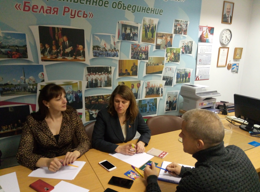 1 октября 2018 года в общественной приемной Фрунзенской районной организации г.Минска РОО «Белая Русь» состоялось обсуждение предложений в Закон Республики Беларусь «Об изменении Кодекса Республики Беларусь о браке и семье», в котором приняли участие депутаты Мингорсовета Дрозд И.А. и Громова А.Ю., заместитель председателя Фрунзенской районной организации г.Минска РОО «Белая Русь» Тимашишин И.В., активисты районной организации, посетители общественной приемной.